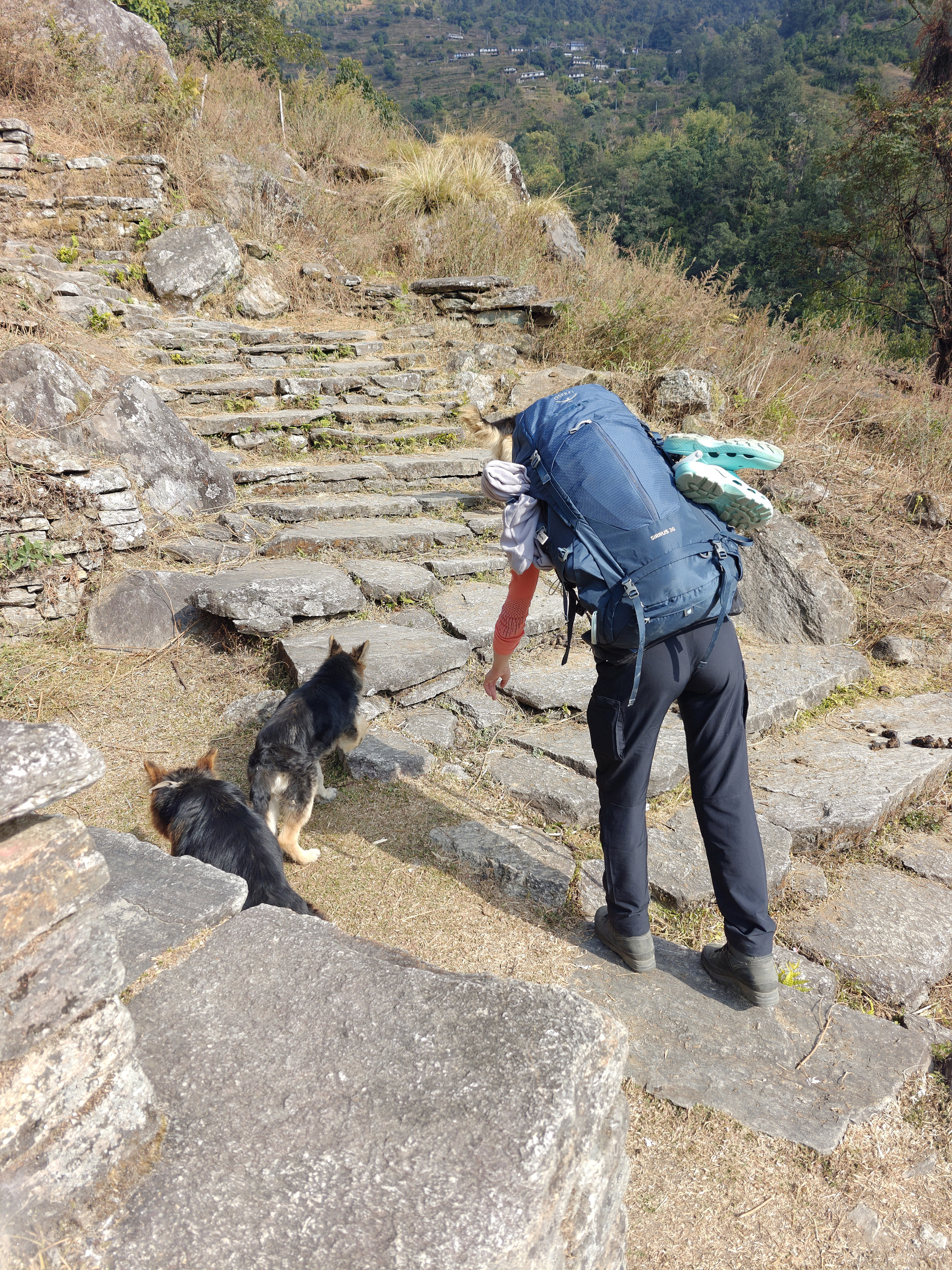 И вот уже перед самым Ulleri начинается резкий подъем и сплошные лестницы. Идем в спокойном темпе, не торопимся. Периодически встречаем собак, они тут очень дружелюбные и всегда рады погладиться.