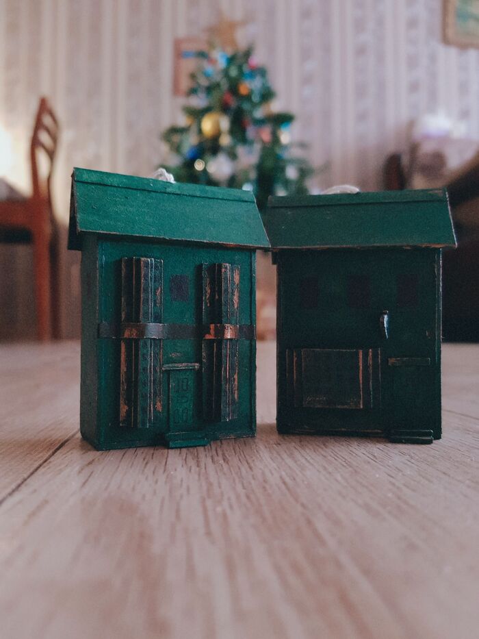 Все игрушки, домики созданы в ручную. К сожалению, многие идеи не были реализованы( Но надеюсь к следующему Новому году всё будет готово.