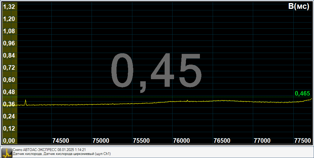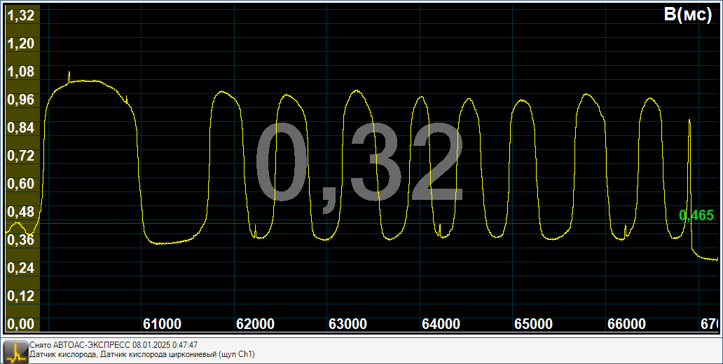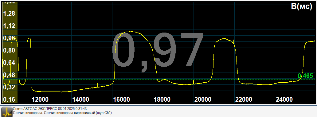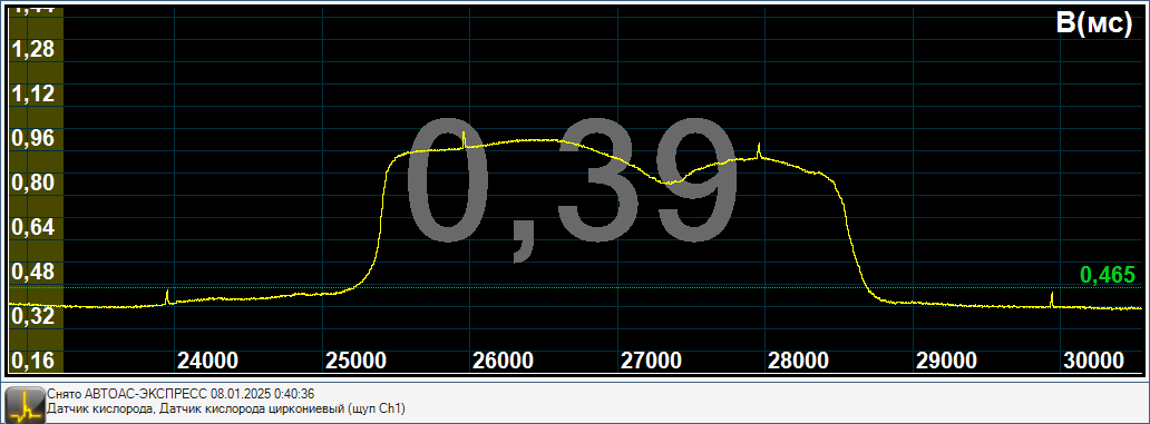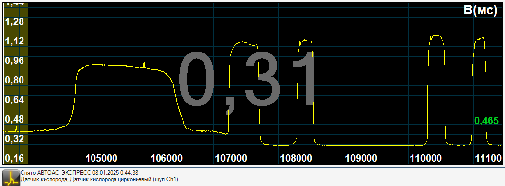 Если бы датчик кислорода был был бы отравлен или изношен, то он бы не работал бы в таком широком диапазоне напряжений(0,30-1,1Вольт), а был бы более узкий диапазон значений например 0,35-0,7Вольт.