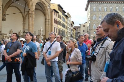 посмотрев наверх, вы можете увидеть человека, путавшего мишуру и дождик