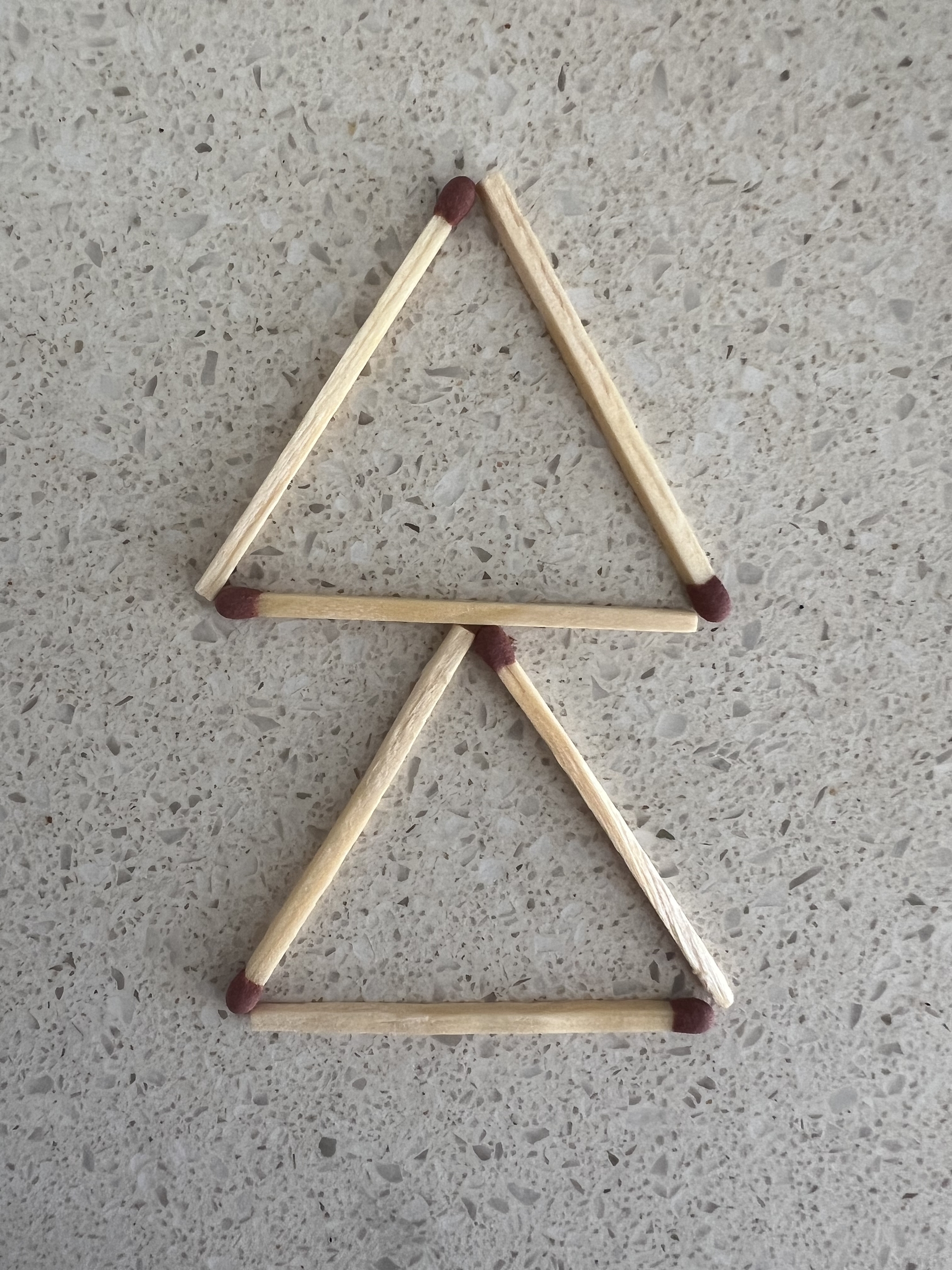 Переставьте 3 спички так, чтобы удвоить число треугольников. Спички не ломать и не пересекать друг с другом.
