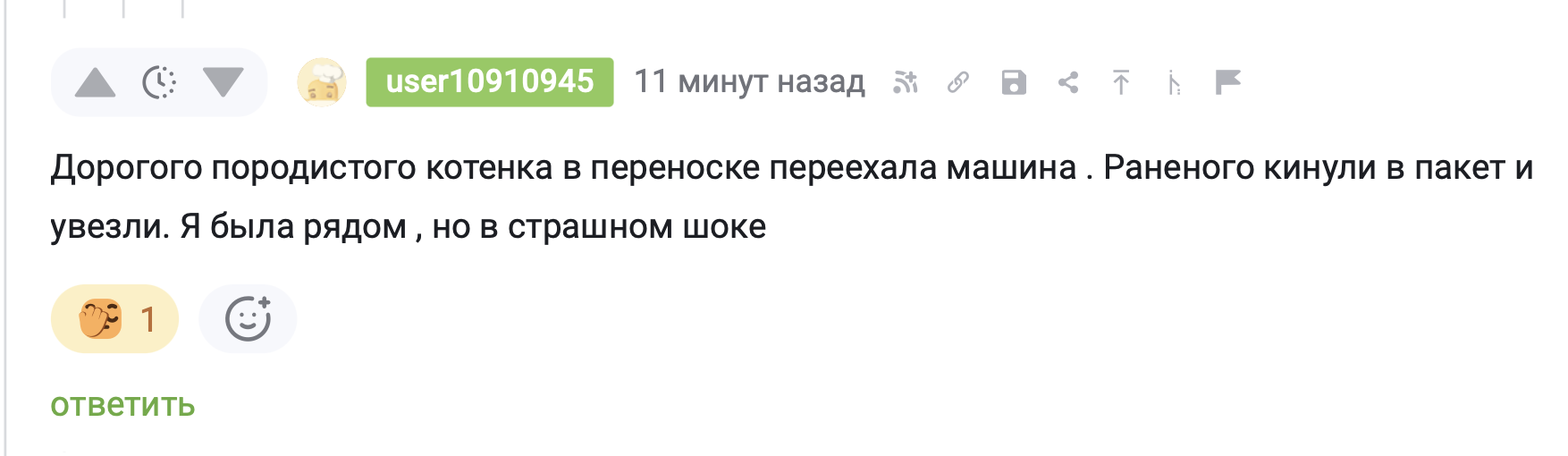 Дорогого породистого котенка в переноске переехала машина . Раненого кинули в пакет и увезли. Я была рядом , но в страшном шоке