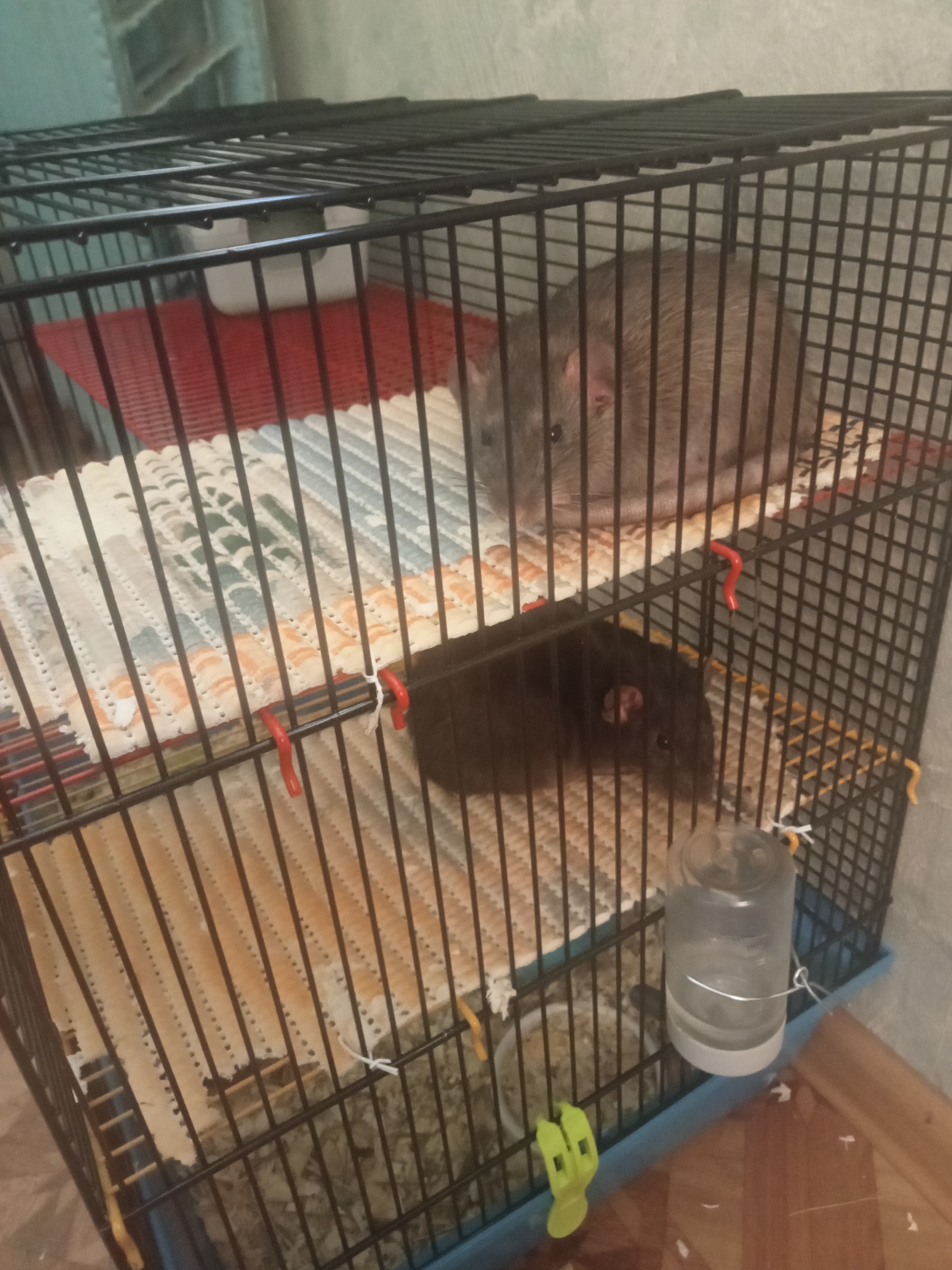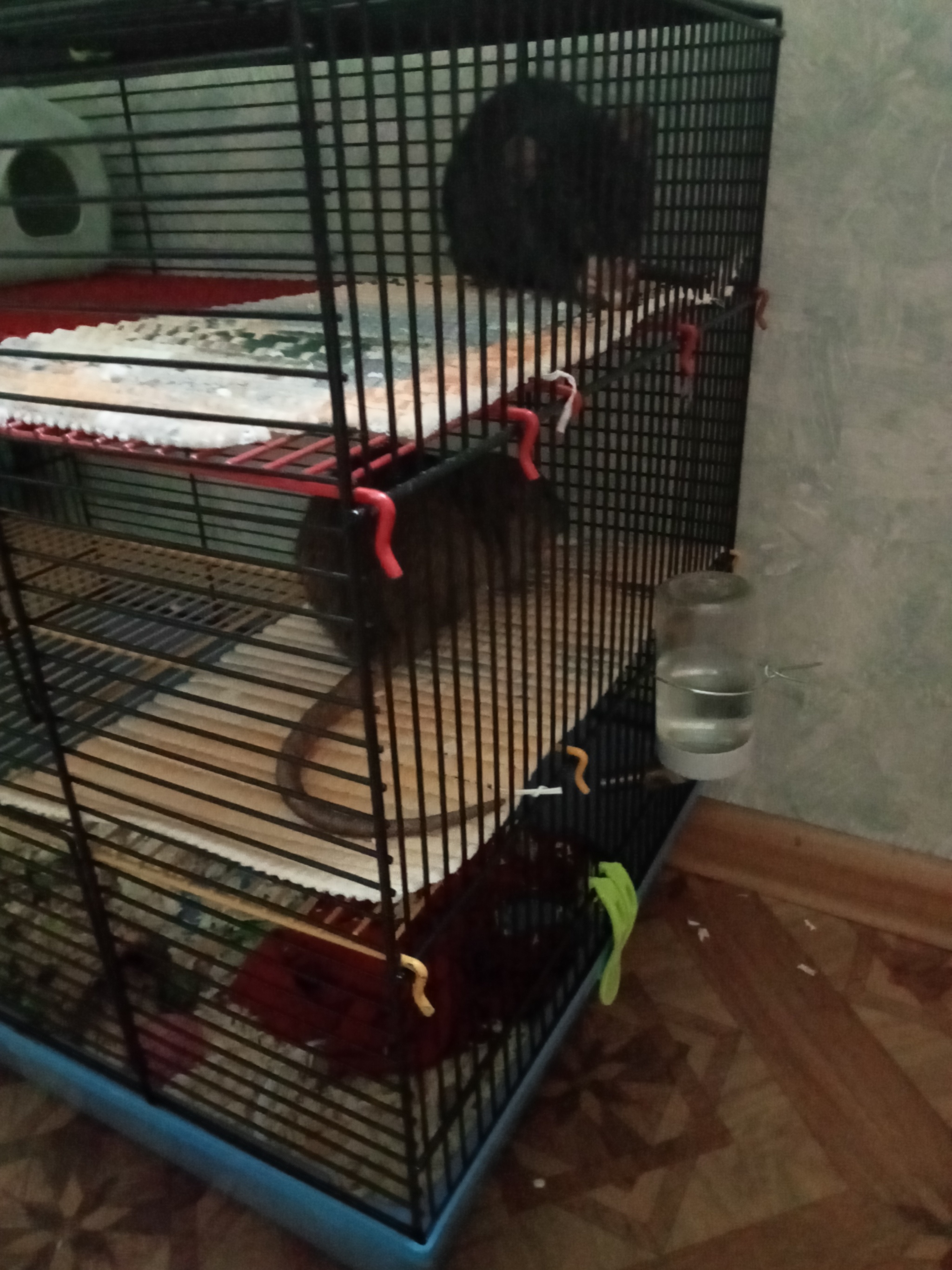 Вчера моим девчулям приехала новая клетка, три этажа, простор, бегайте не хочу))