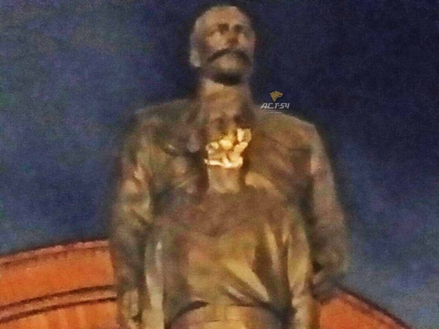 Судя по фотографии, опубликованной в сообществе «АСТ-54», злоумышленнику удалось повредить часть памятника - голову цесаревича Алексея.