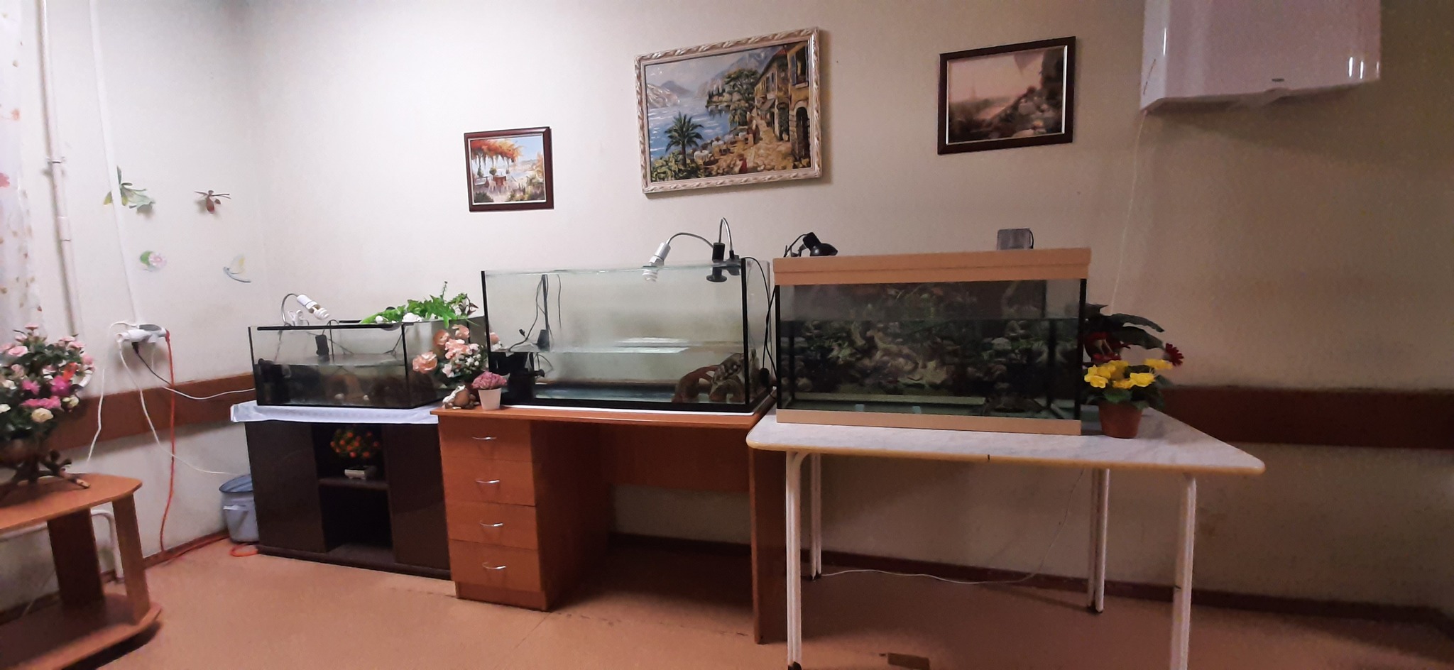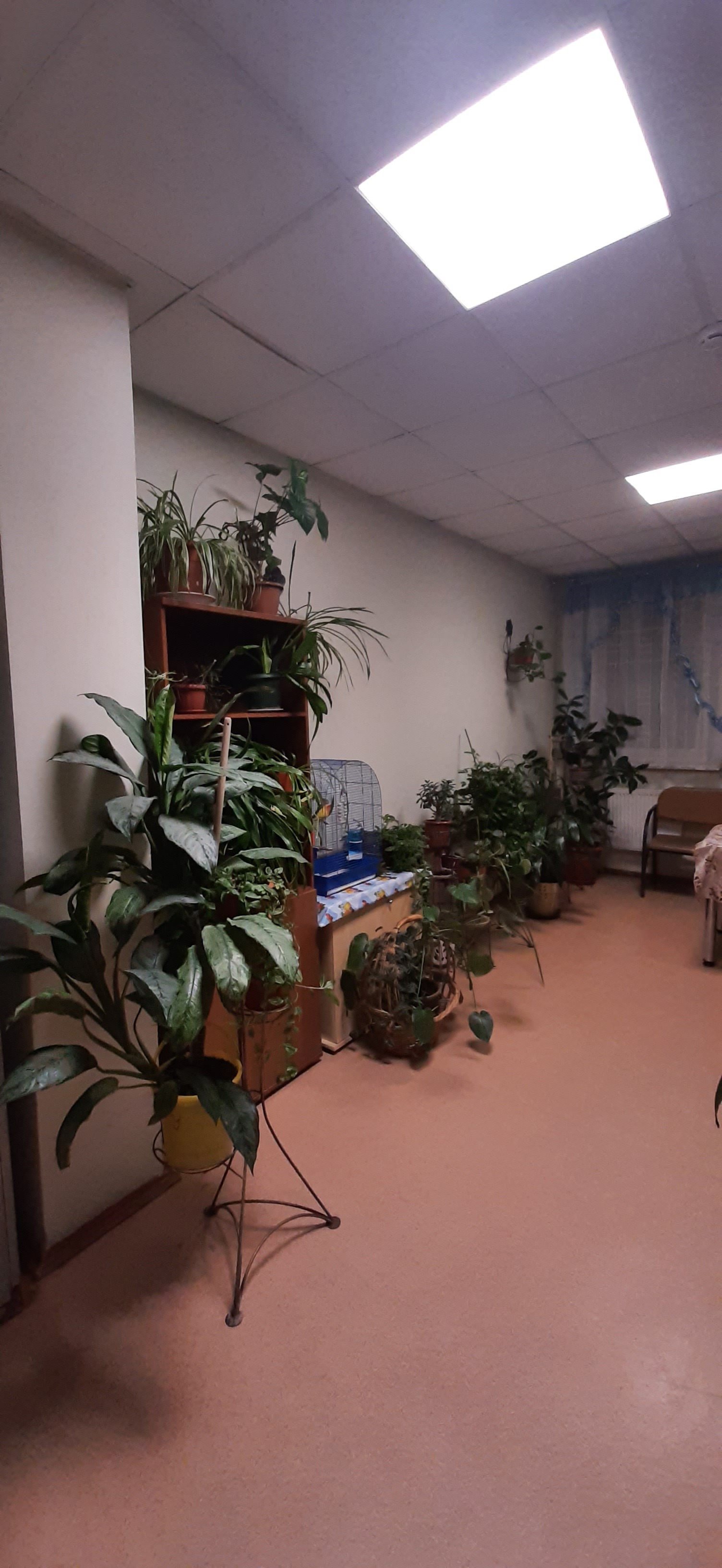 Ввиду улучшения жизни наших проживающих, наша комната отдыха была переформирована под палату, а 2 тупика коридора были переделаны под уголки отдыха с животными, и места встреч с родственниками