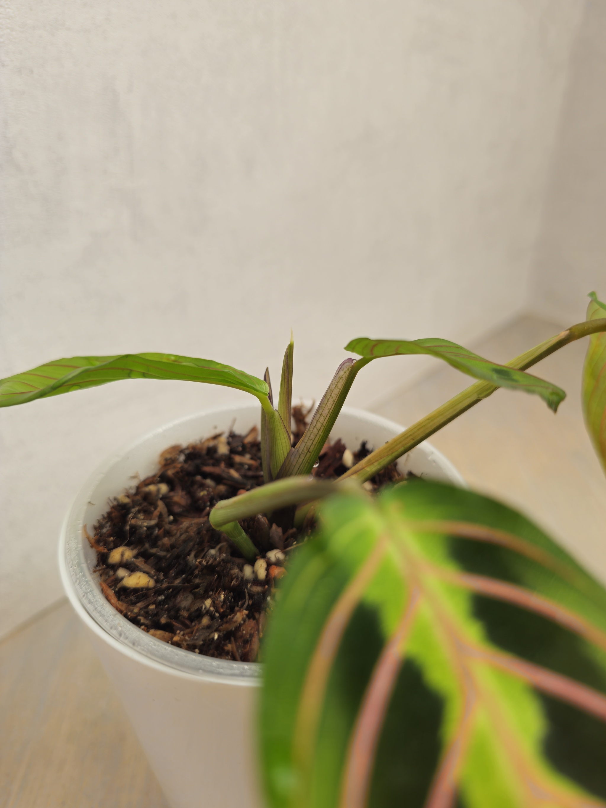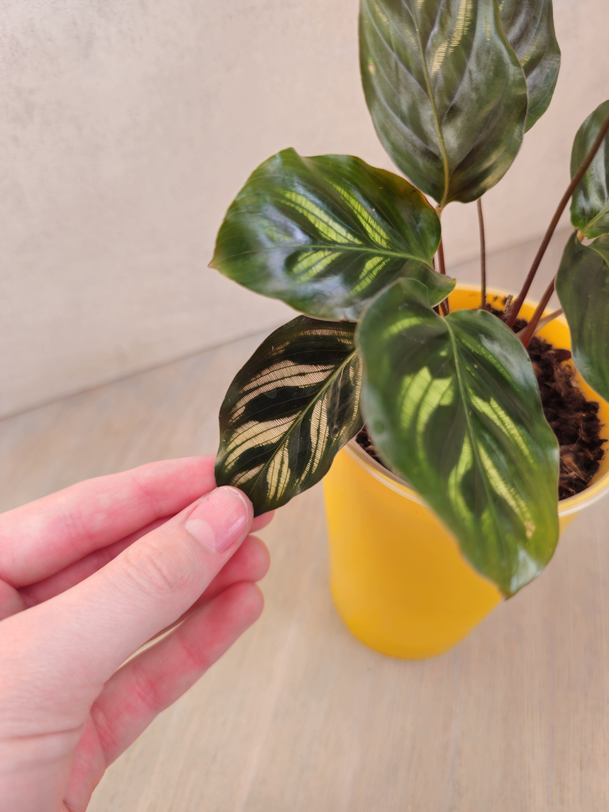 Калатея Миели тоже не отстает от Дотти, выпустила новый лист, упомянутый в предыдущем посте, и снова начала выращивать новый. Новые параметры окружающей среды ей тоже понравились)
