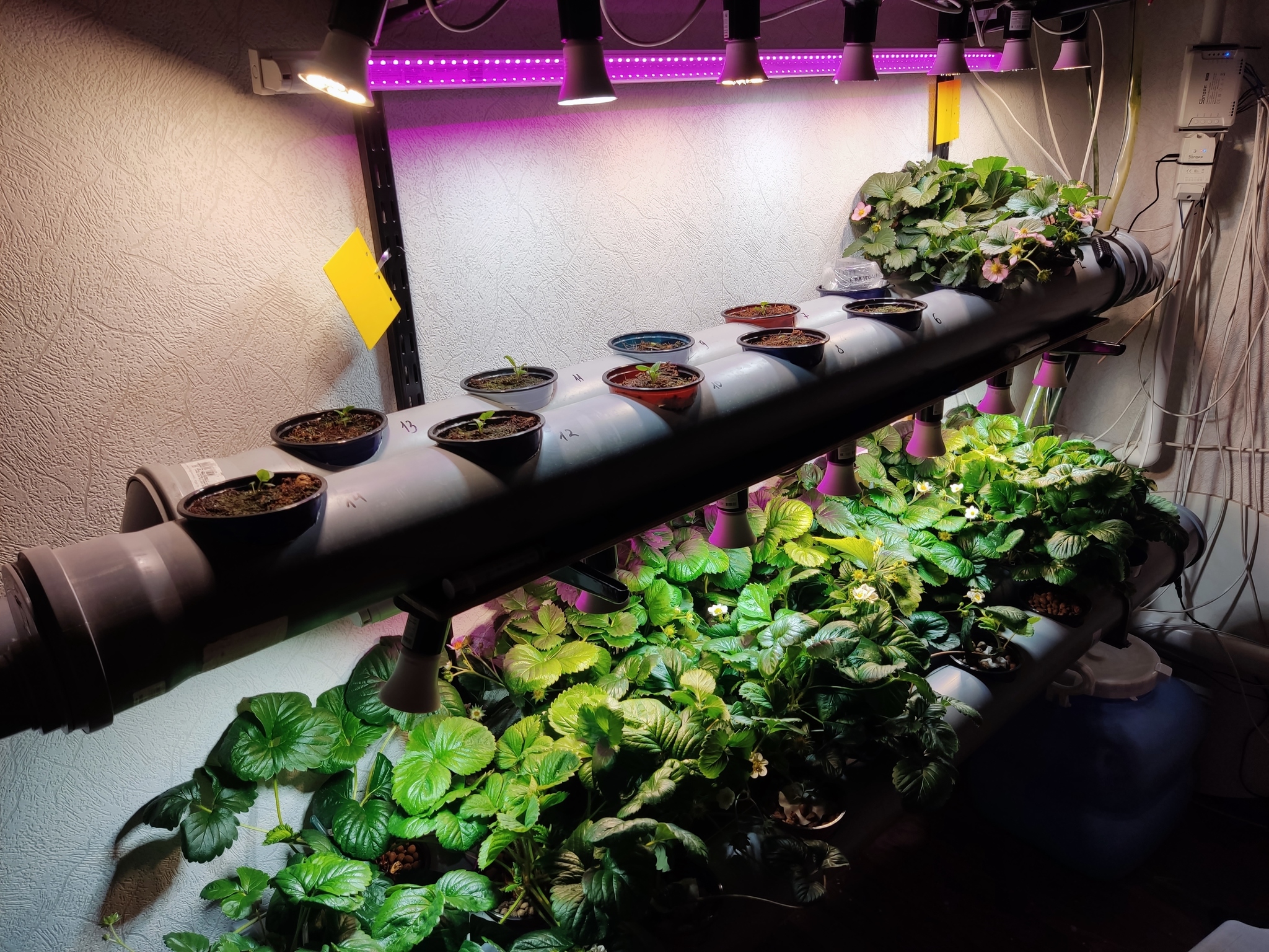 На подходе установка системы обратного осмоса и дозирующих насосов. Утепление здания до конца, сборка ламп, стеллажей, производство рассады и тд и тп.