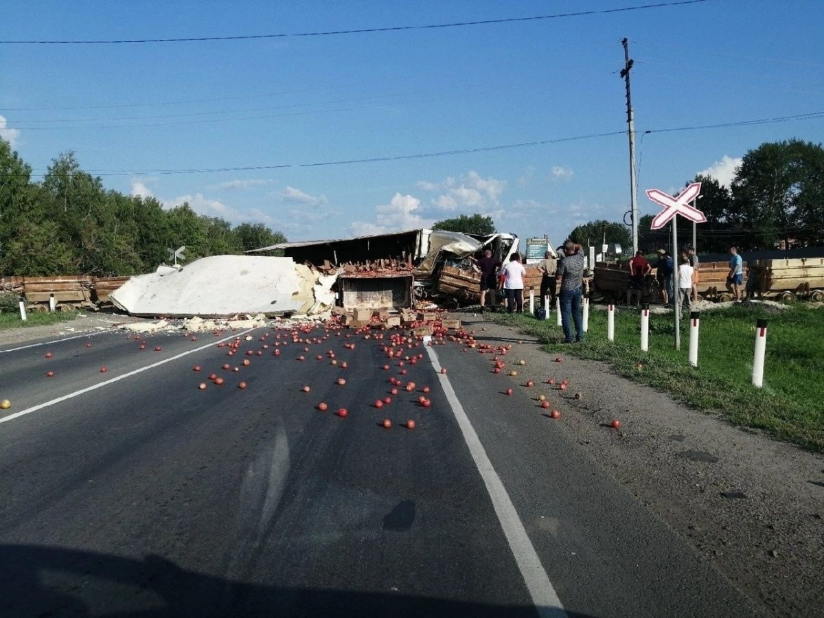 DAF с яблоками врезался в тепловоз ТУ-8 и упал