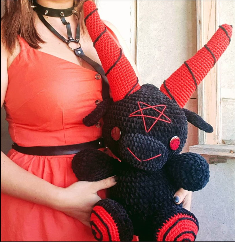 Плюшевые Бафометы разных расцветок. Этот большой, 40 см в высоту.