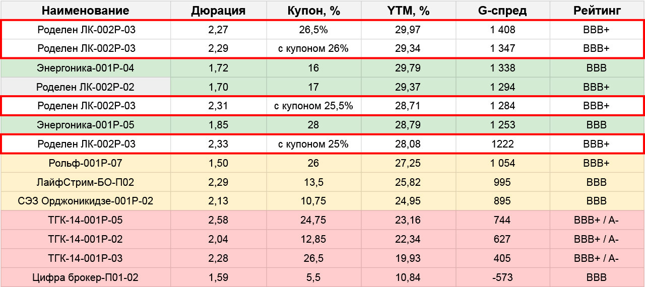 С нынешним культом длины и отсутствием выбора – новый Роделен вне конкуренции с купоном 26,5-26% и даже 25% не кажется совсем печальным вариантом (всё, что выше в табличке, – уступает либо по длине, либо по ТКД). Собираюсь поучаствовать, а до 26% – большим объемом