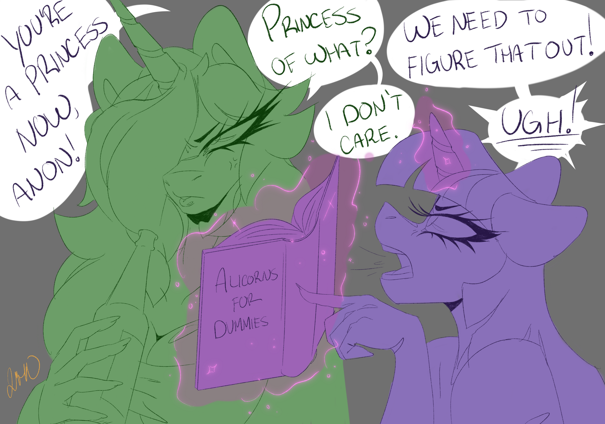 29 MrSiman My Little Pony Новые обязанности 9 месяцев назад - Теперь ты принцесса, Анон!- Принцесса чего?- Мы должны это выяснить!- Мне всё равно- Тьфу! Книжка "Аликорны для чайников" My Little Pony Twilight Sparkle Anon Ещё 0