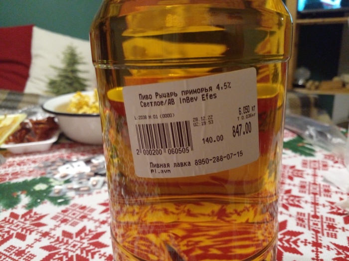 На днях захотелось пива с рыбкой. Зашел в разливайку. Затарился. Когда пришел домой, обнаружил на одной из бутылок наклейку с информацией о покупке 6 кг пива. Когда был в разливайке, не придал значения тому, что продавщица составляет бутылки на вес.