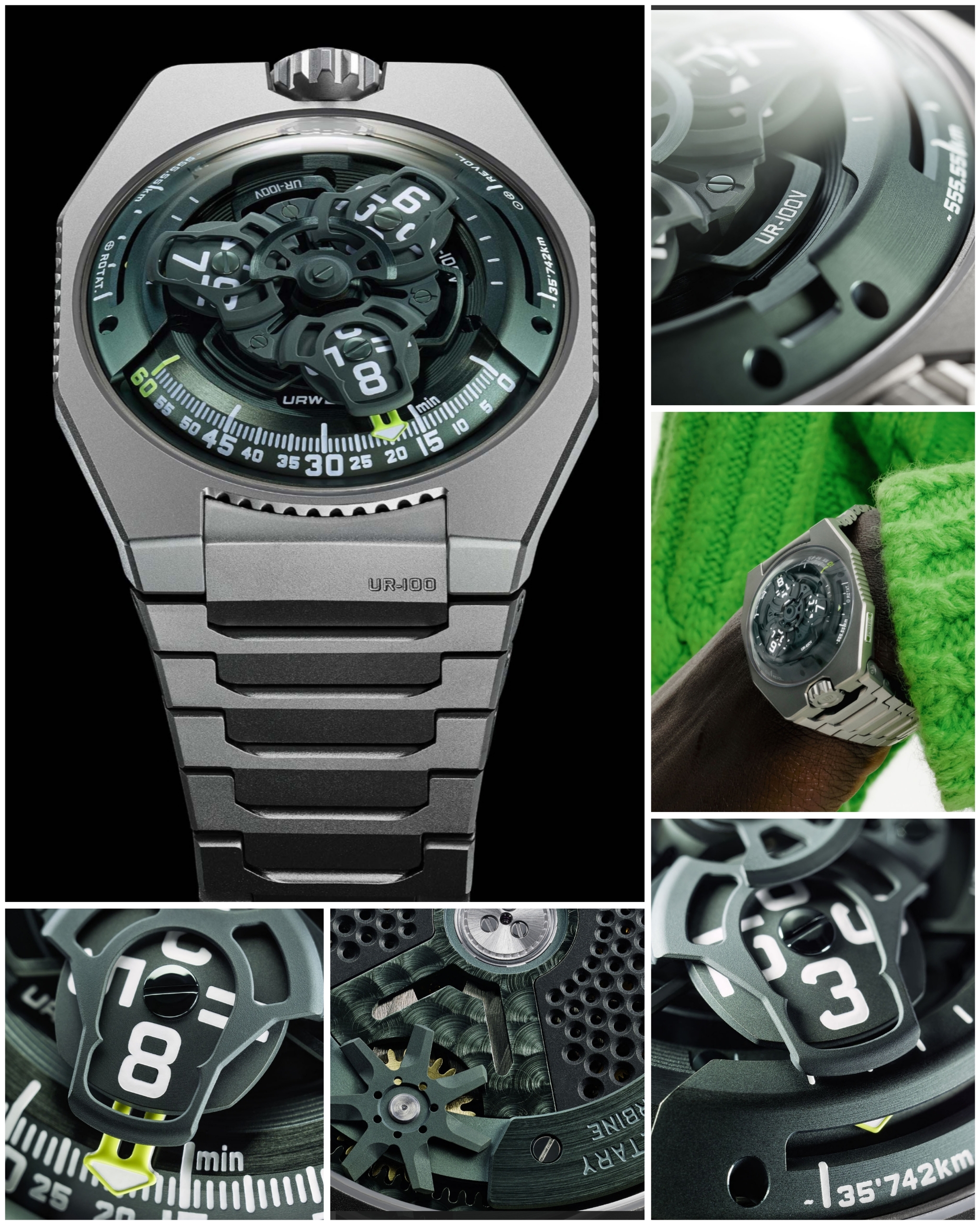 Новые Urwerk UR-100V Magic T Hunter Green с элементами пепельно-зеленого оттенка