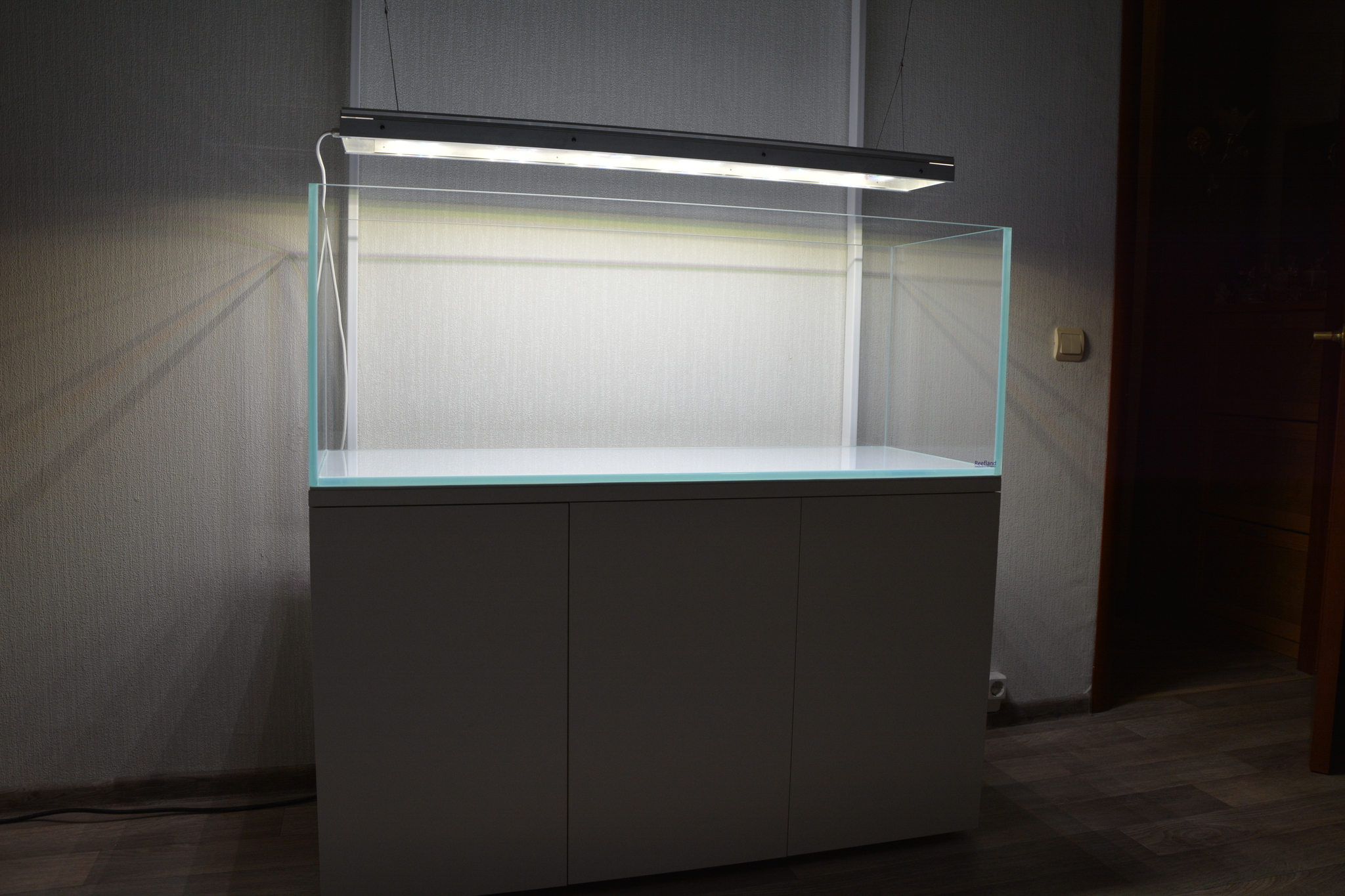 Для реализации идеи около года копил деньги и гуглил идеи. И в конце концов заказал тумбу на металлокаркасе и аквариум. Месяц мне это хозяйство собирали на заказ. Что хочется уточнить, что для меня было важно: