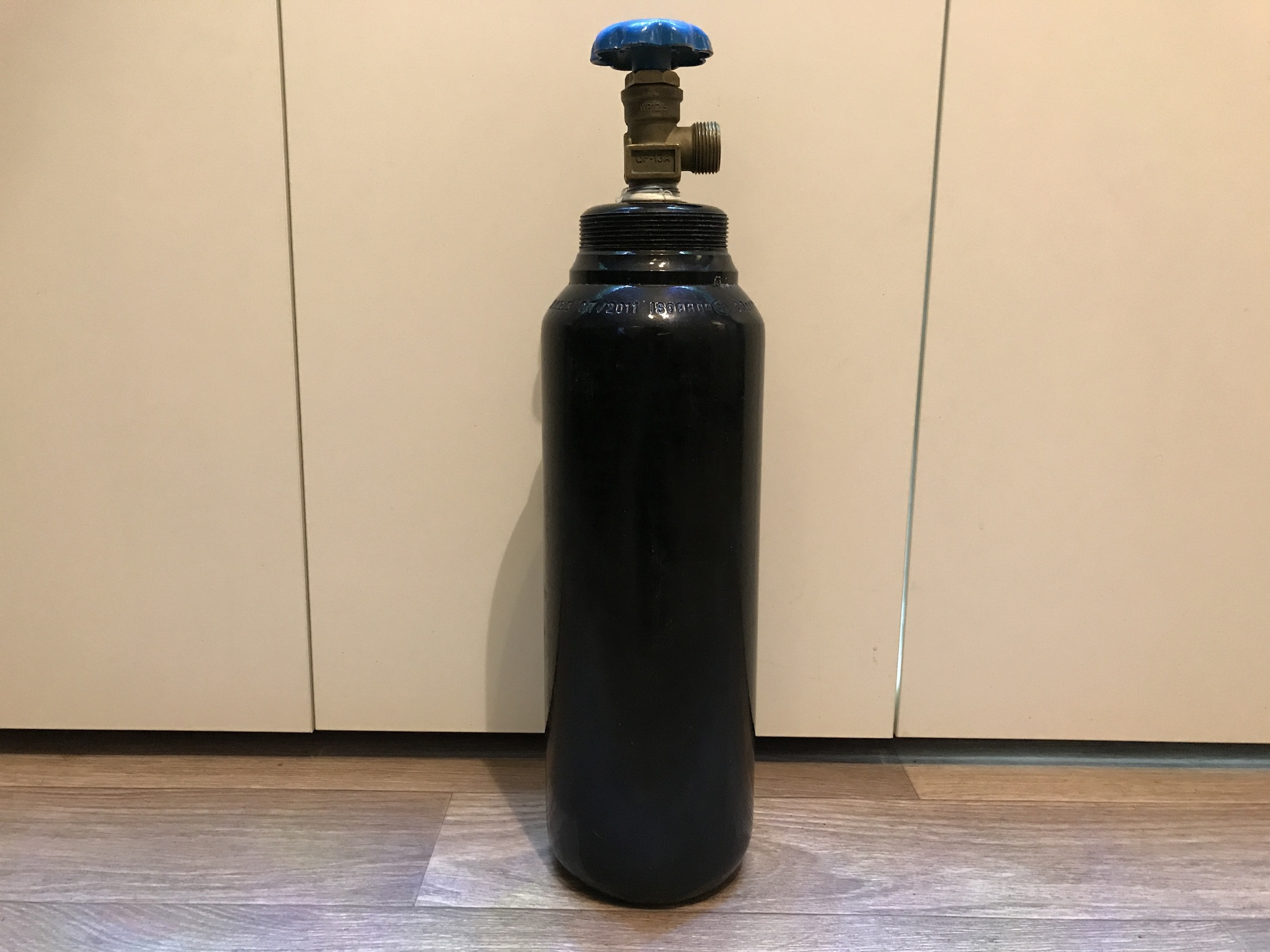 Баллон углекислотный. По сравнению с брагой, лимонкой, и прочими методами подачи газа на мой взгляд лучший вариант, так как одна заправка позволяет забыть про него на срок от полу года до года. И подача газа всё это это время стабильная, так как давление не меняется.