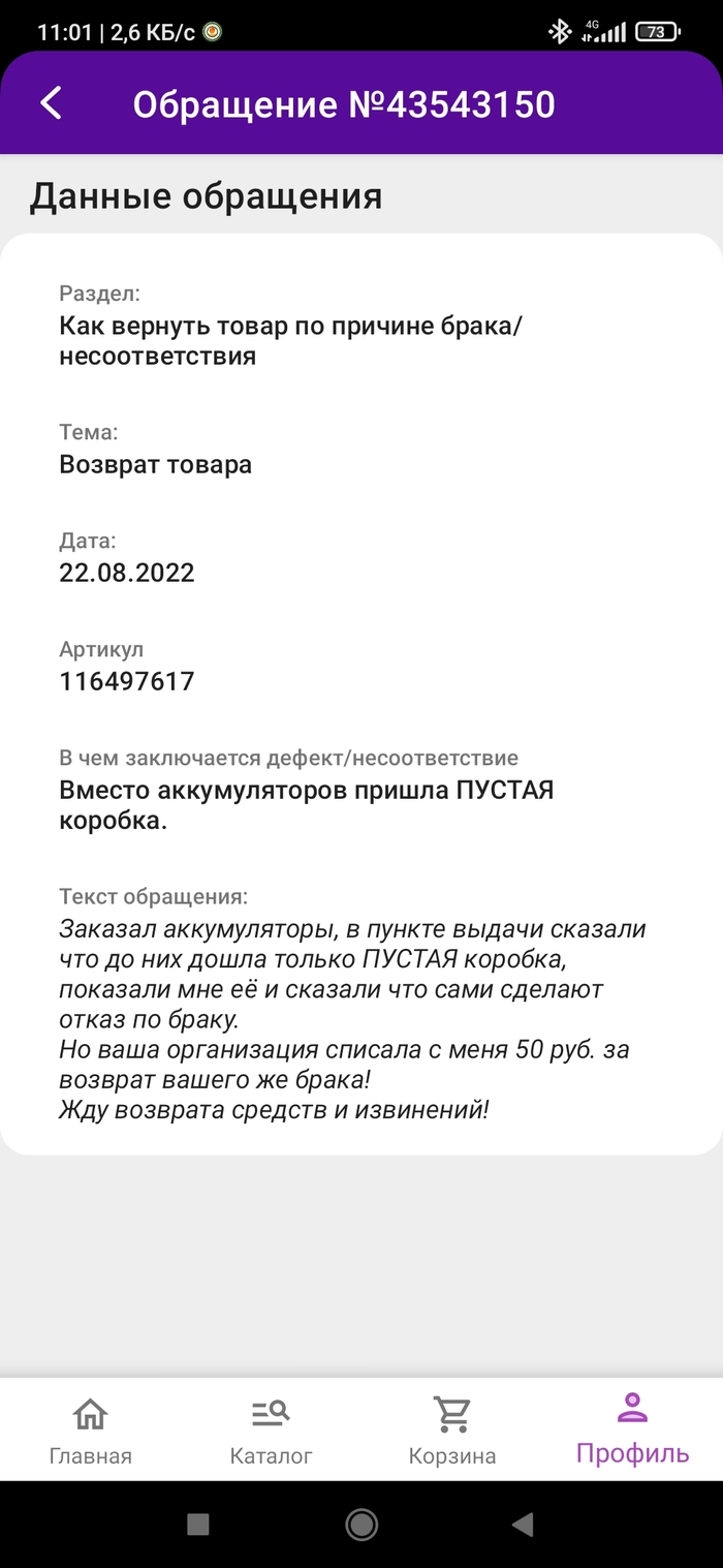 Но ведь они мне нужны, подумал я снова полез на Wildberries чтоб перезаказать аккумуляторы и увидел там извещение о списании 50 руб. "за возврат".