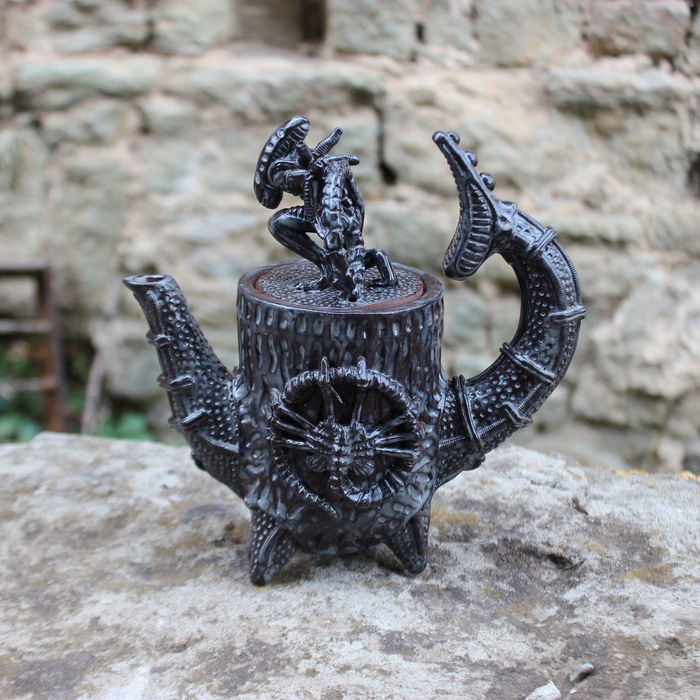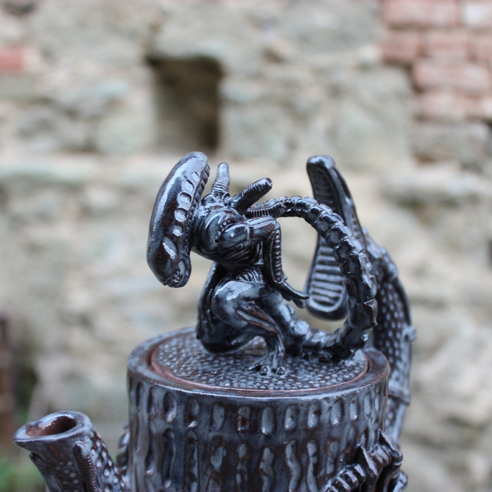 Продолжаю серию LV426 новой работой. Чайник выполнен из пласта керамической массы "Брауни". Прошёл два обжига на 1060 и 1150 градусов. Декорирован эффектарной глазурью "Тина", а внутри покрыт кислостойкой прозрачной глазурью. Чайник получился со стабильным наливом, но без гидрозамка.