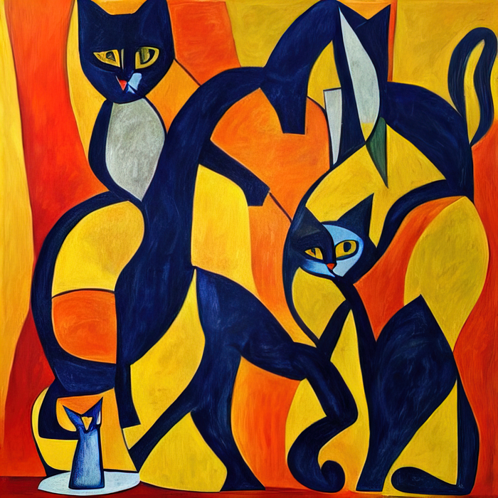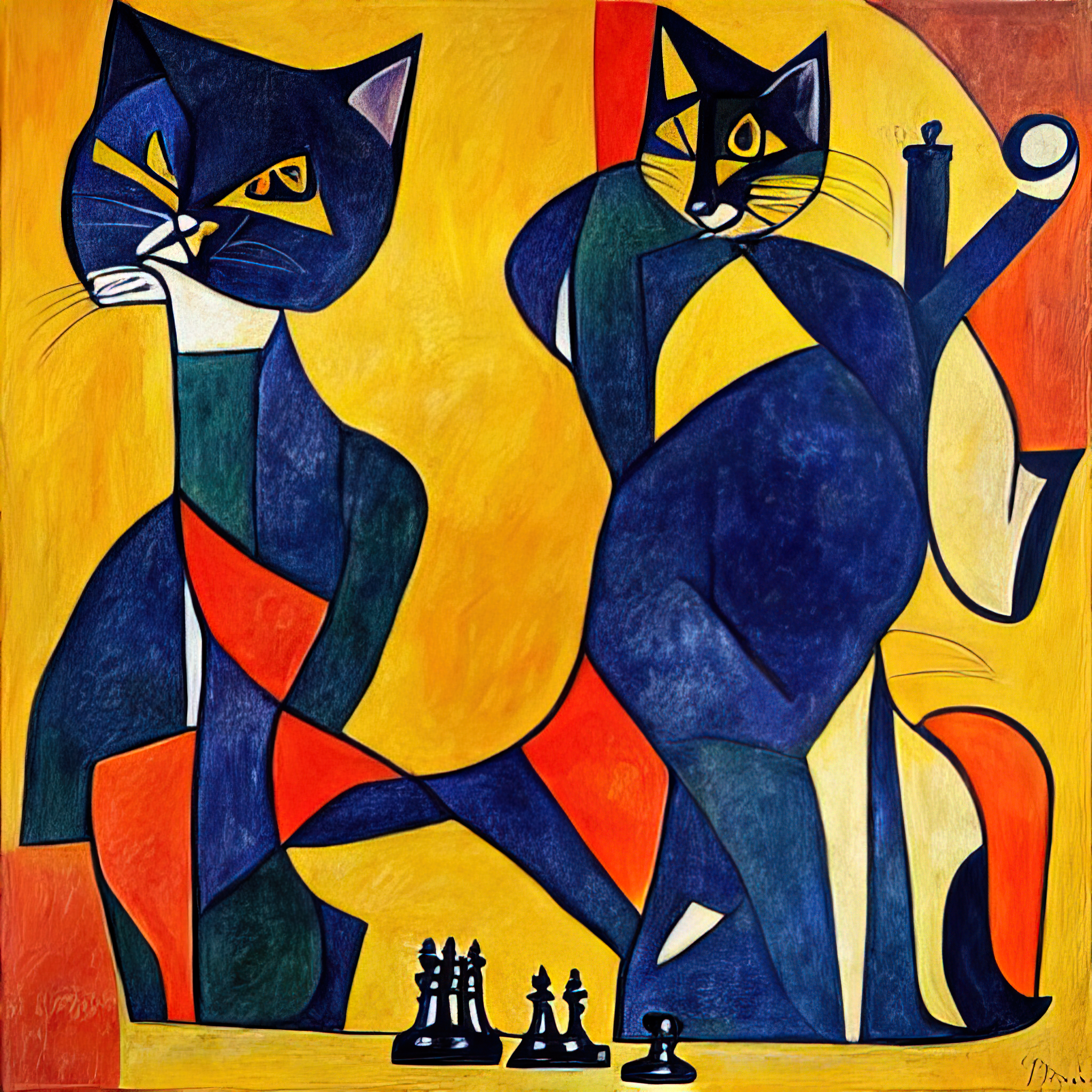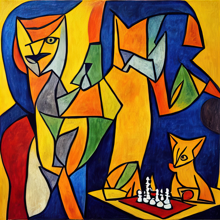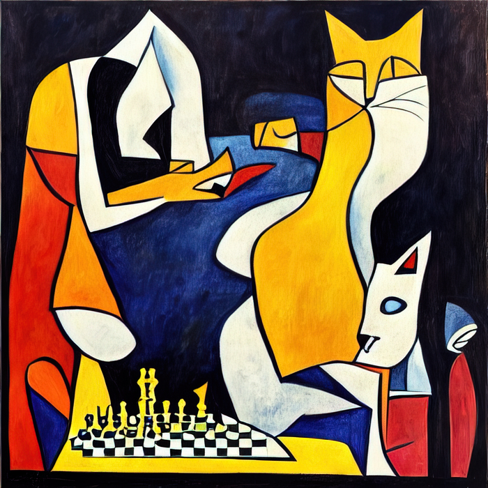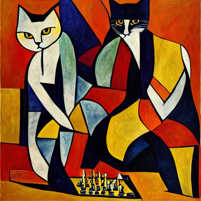 Текст - "коты играют в шахматы в стиле Пикассо."