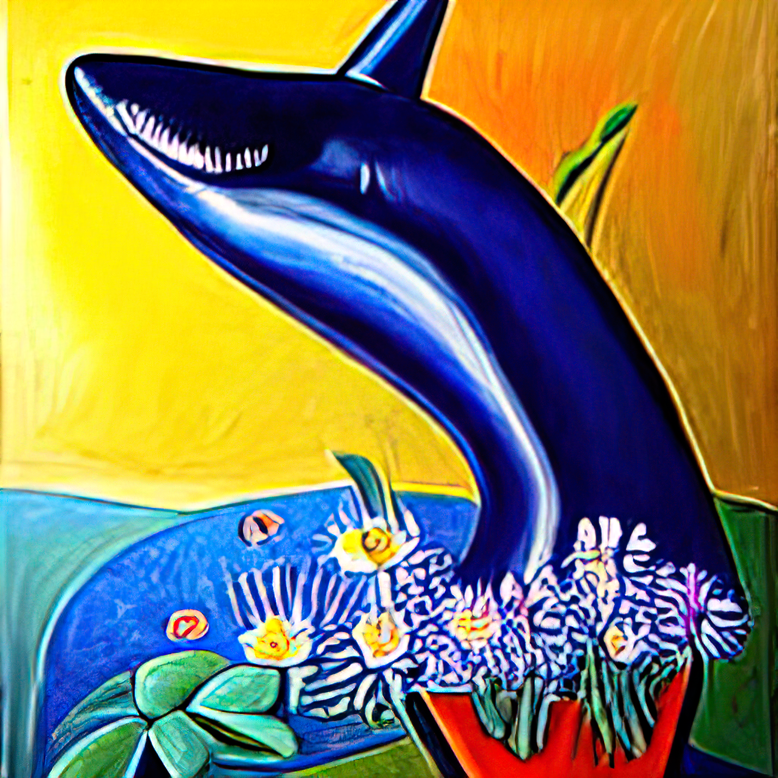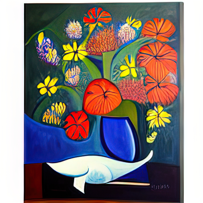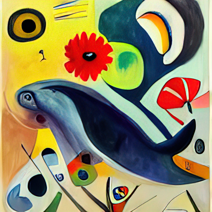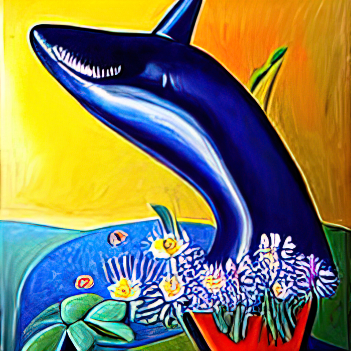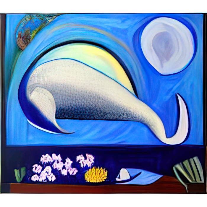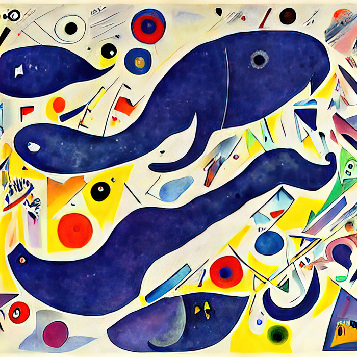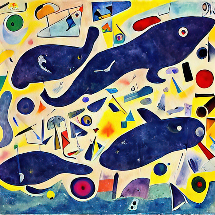 Текст - "киты с незабудками в стиле Кандинского/Дали"