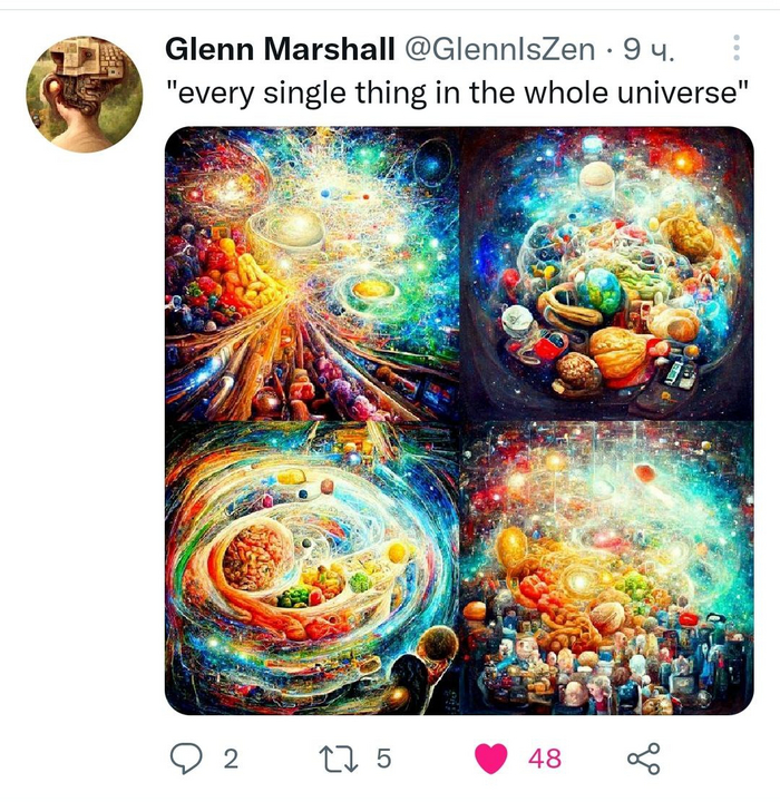 Я потестировал только одну часть нейронки - генерацию изображений по текстовому запросу. Пишешь текст - получаешь картинку.