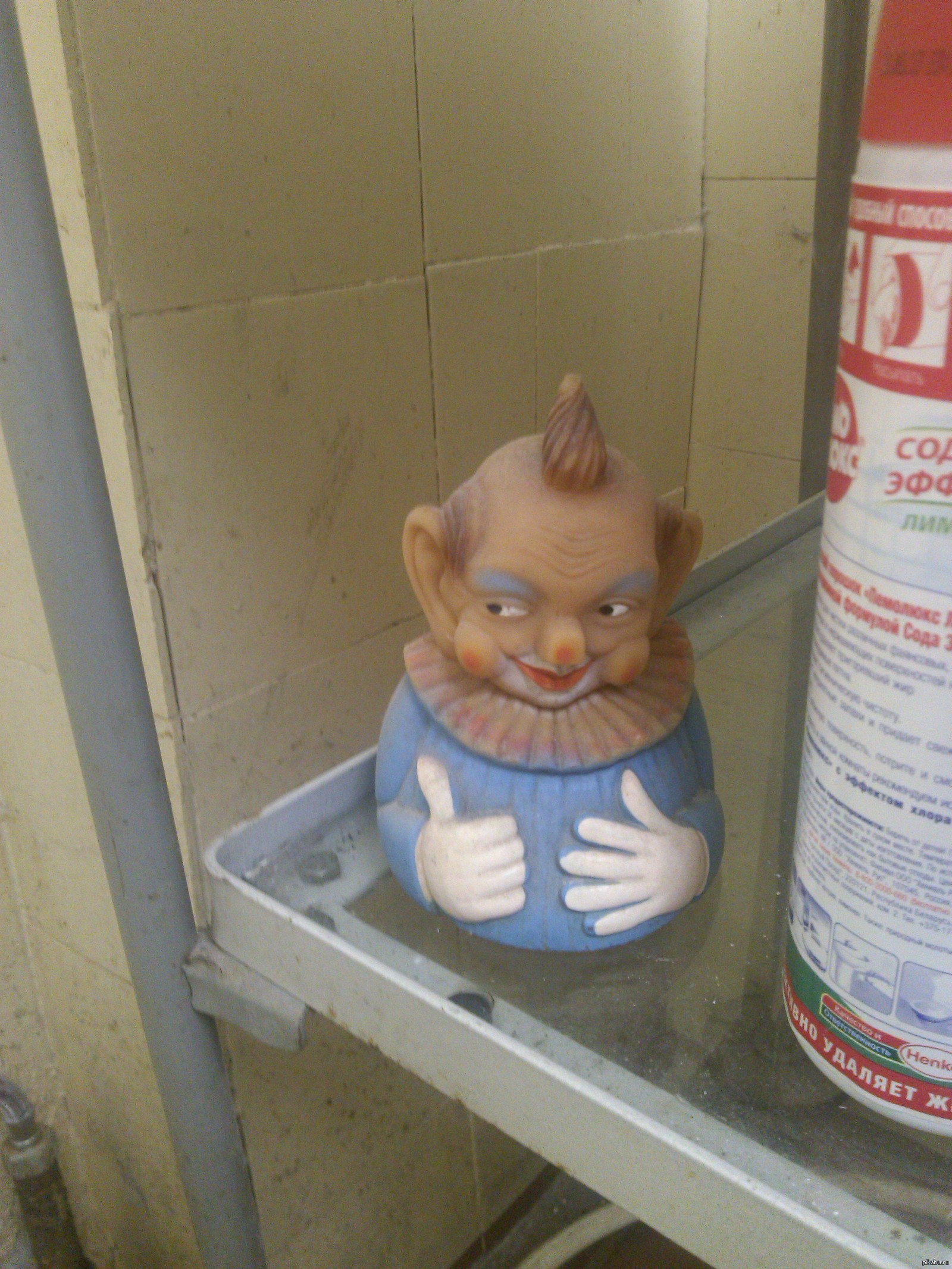 16 JimmyFelt Новый друг. 10 лет назад Устроился на новую работу, вот такой сюрприз ждал меня в туалете. [моё] Страшно Работа Клоун Оно