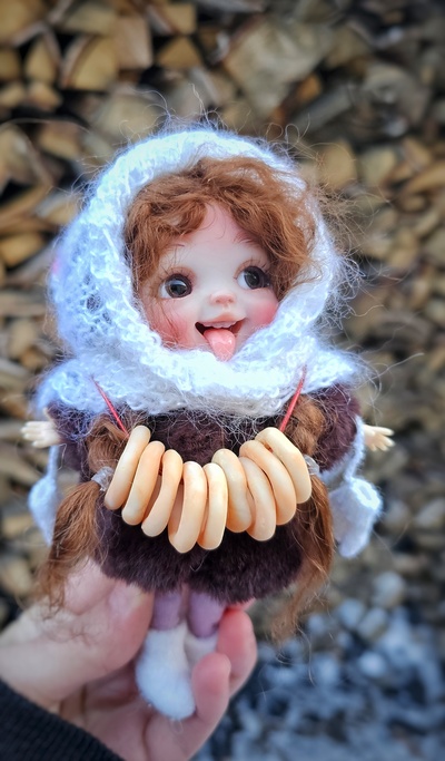 Материал: полимерная глина, парик из шерсти козы, наряд ручной работы