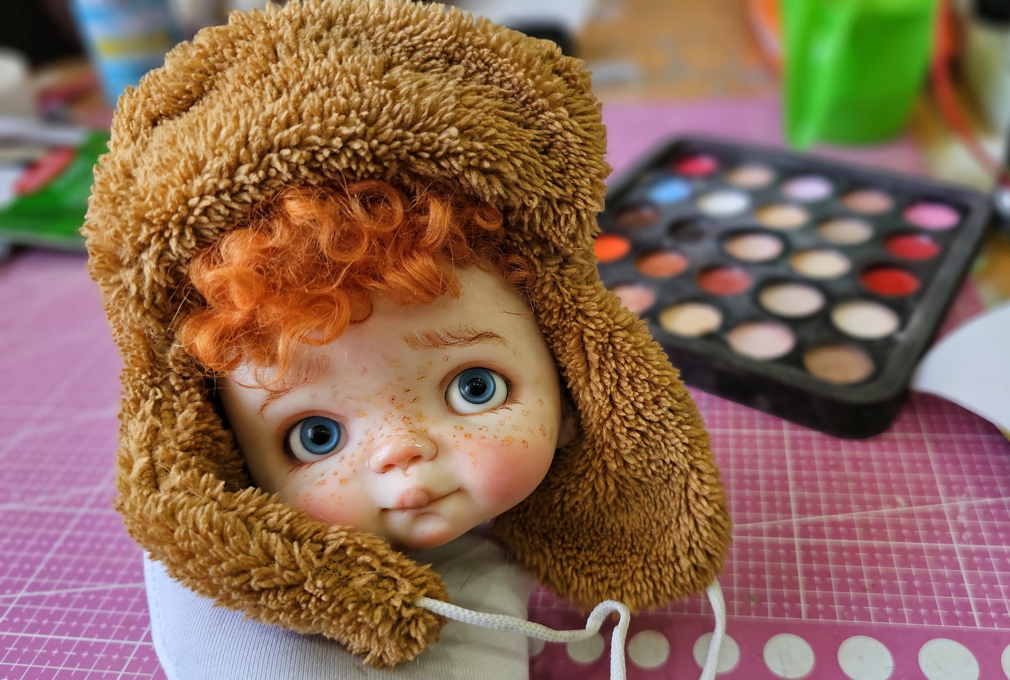 Они большего размера моих предыдущих моделей. Рост куколки получается 25 см. Глазки подвижные, тело шарнирное.