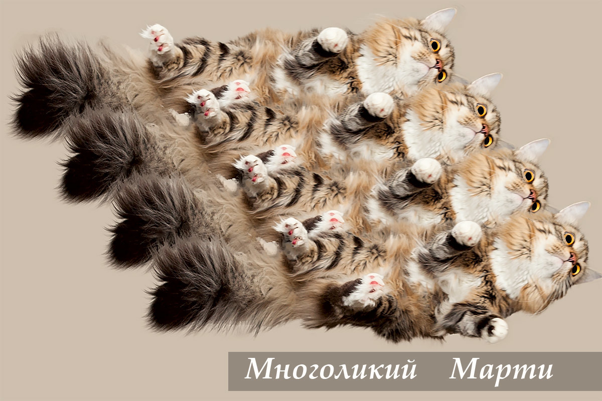 Марти снился прошедший день, елка, игрушки, коробка и люди. Люди, которые так любят Марти, что подарили ему целую коробку красивых, елочных игрушек! И от это мысли он взлетал к потолку и парил над елкой и людьми. А люди смотрели вверх, улыбались глядя на летающего кота и называли его незнакомым словом «Многоликий» Марти.