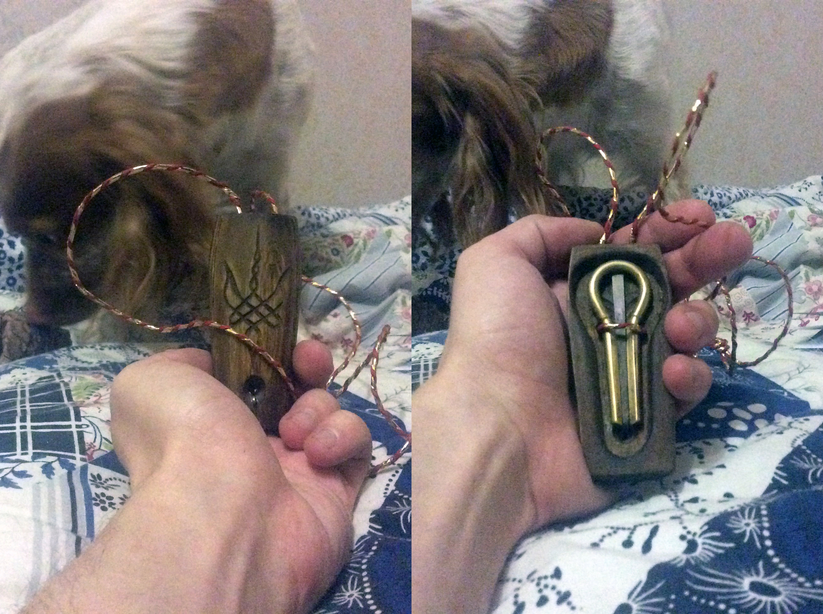 Ну и ещё один сувенир, о смутно-знакомом запахе которого я писал в начале. Сперва я подумал, что это что-то вроде оберега, сделанного из сандала (отсюда и смутно-знакомый запах!) Но стоило его повернуть... А там - ВАРГАН! :))