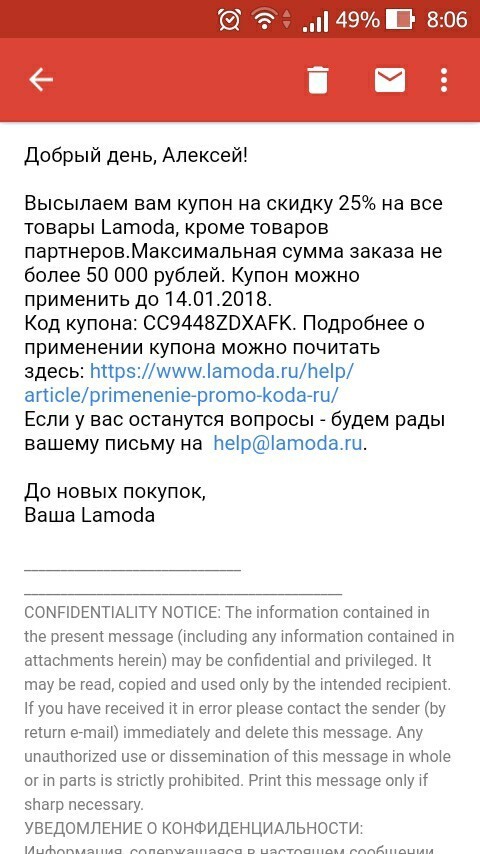 2. Далее приходит опять письмо на почту: