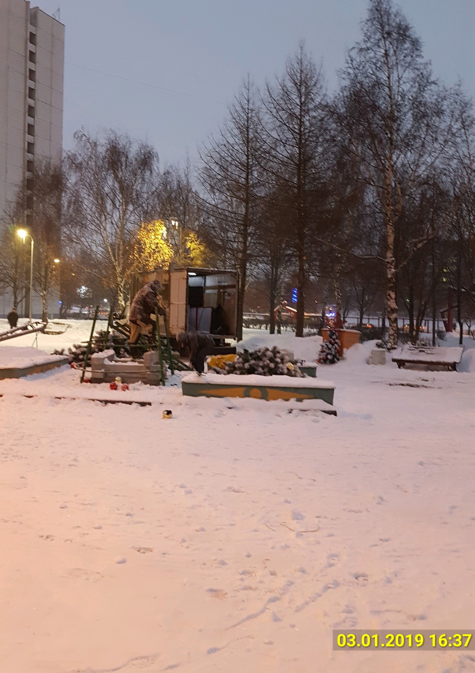 SergeyX Новый год уже всё. 6 лет назад В Москве в парке 30-летия победы сегодня уже разобрали и увезли ёлку. [моё] Праздника не будет Праздники кончились