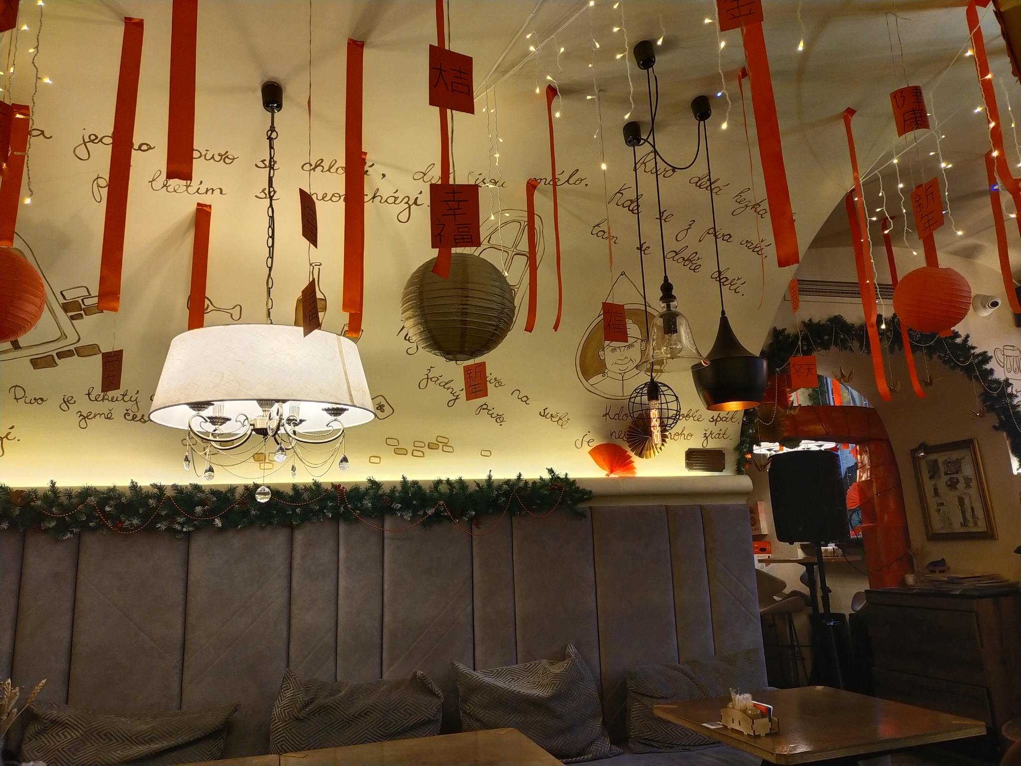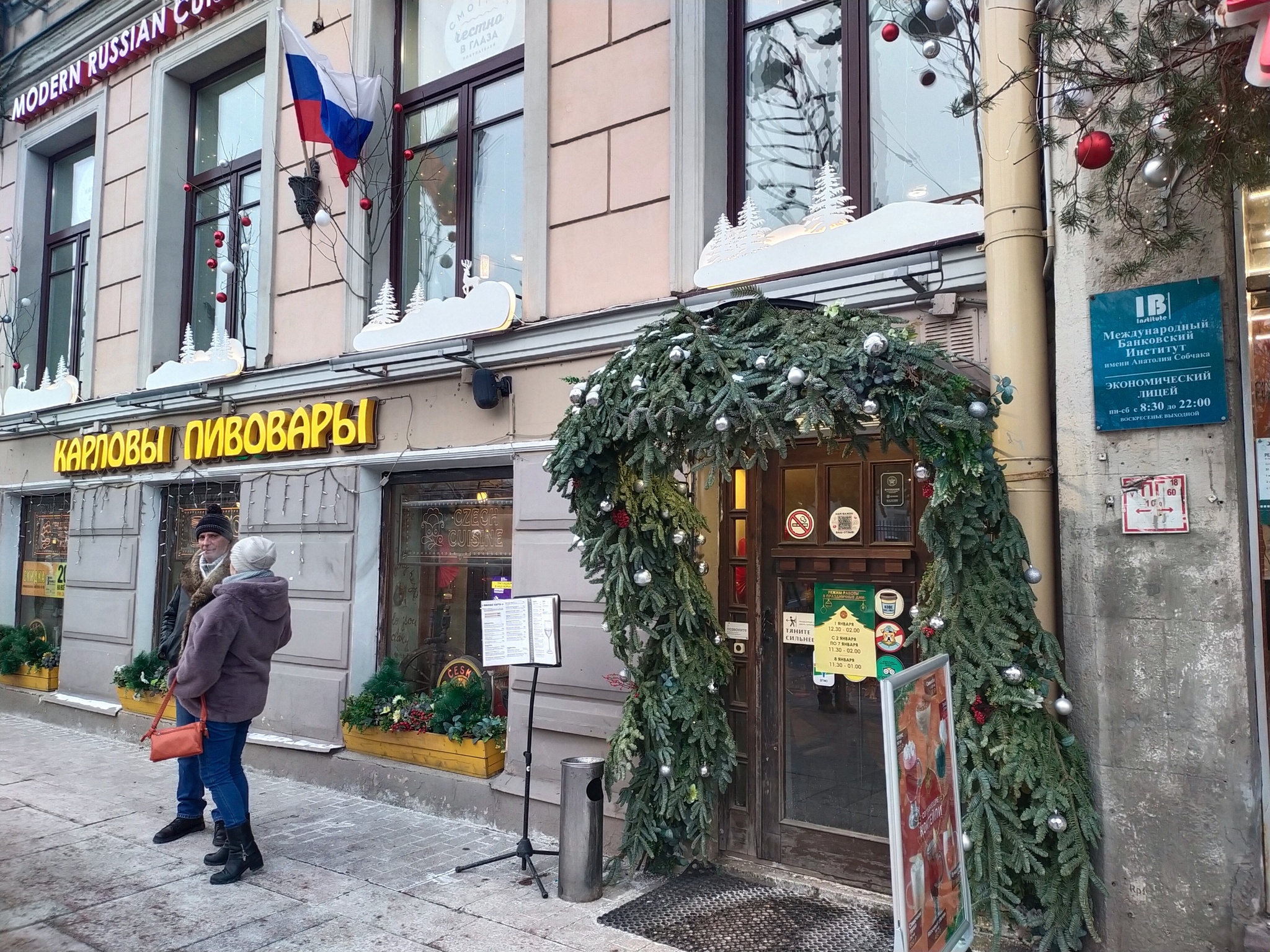Постояв ещё некоторое время в очереди за куртками , мы очень проголодались и пошли в ресторанчик.