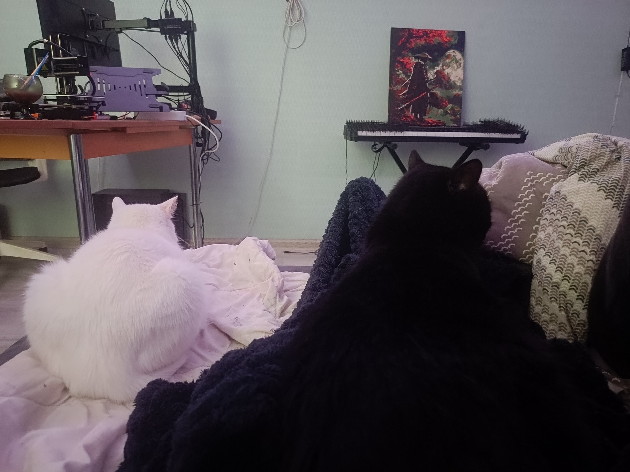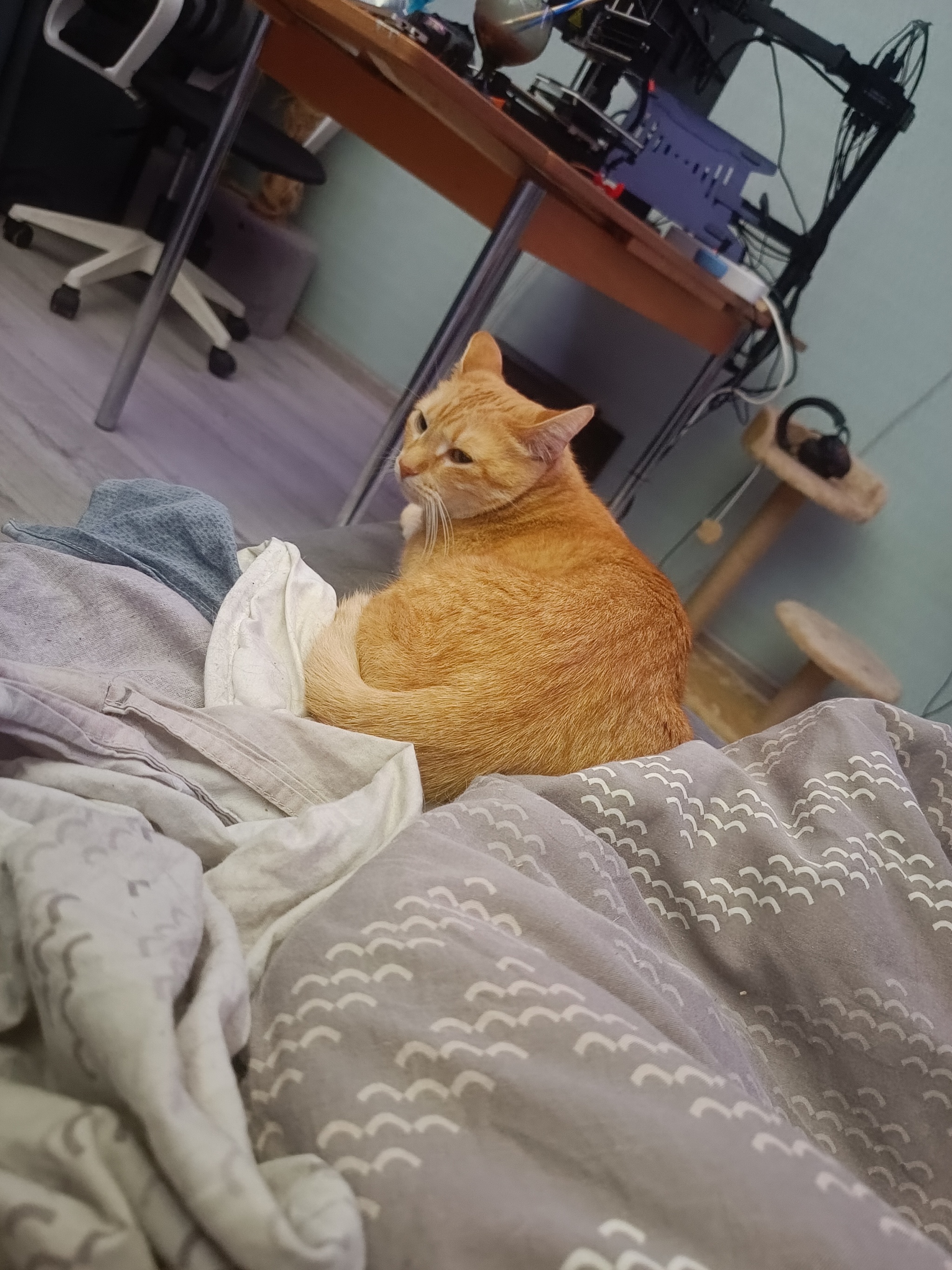 Завели в начале недели нового кота. Зовут Батон. По моим меркам худенький и мало пушистый. Ничего, будет через полгода как 2 других.