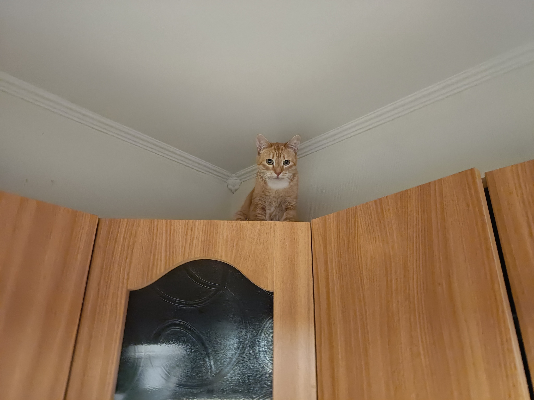 Любимая локация -кухонный шкаф. Это потому что он тоже рыжий?