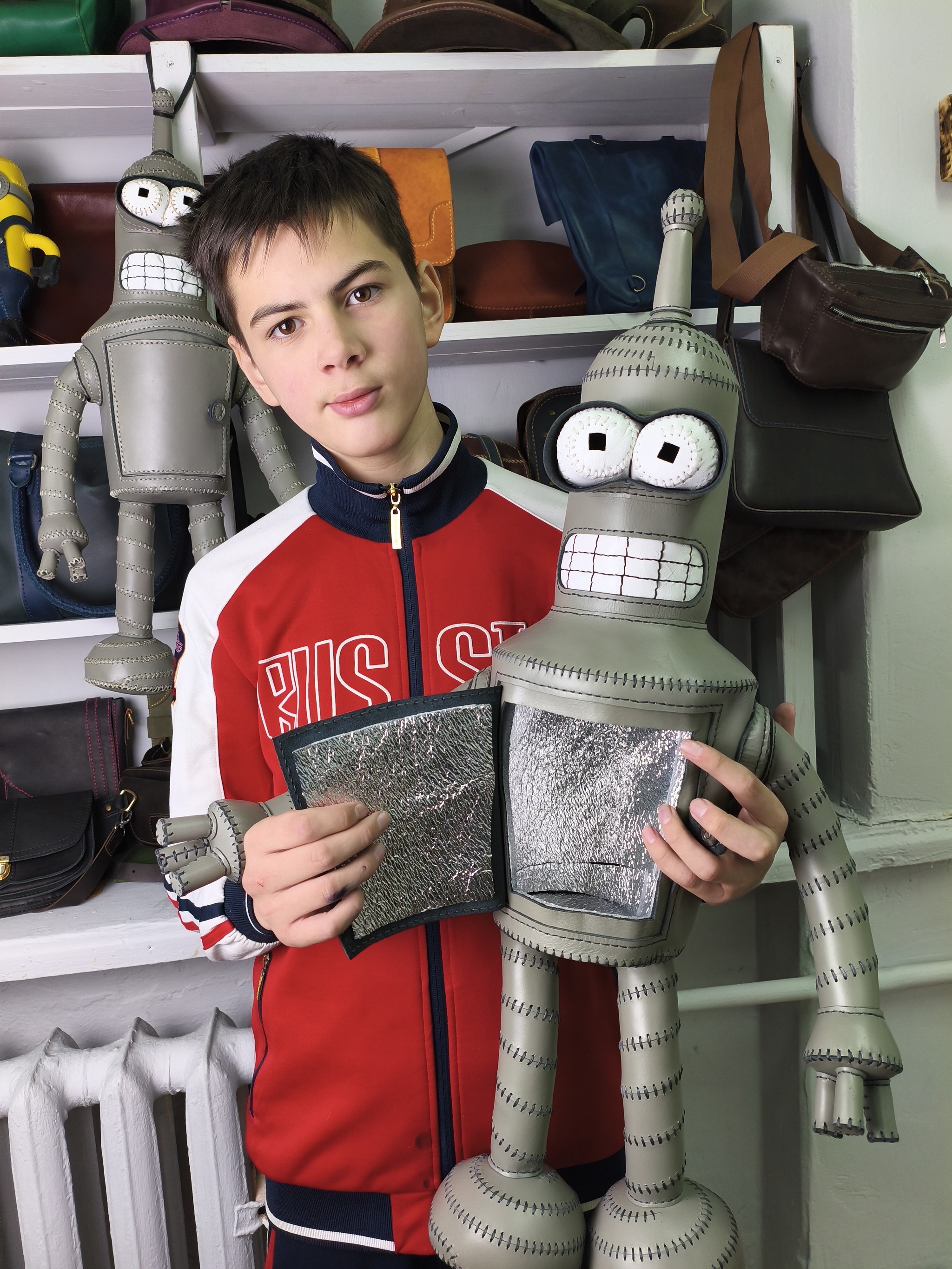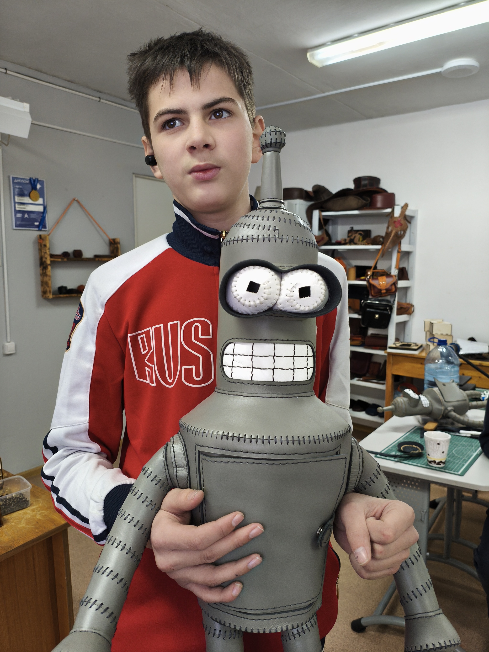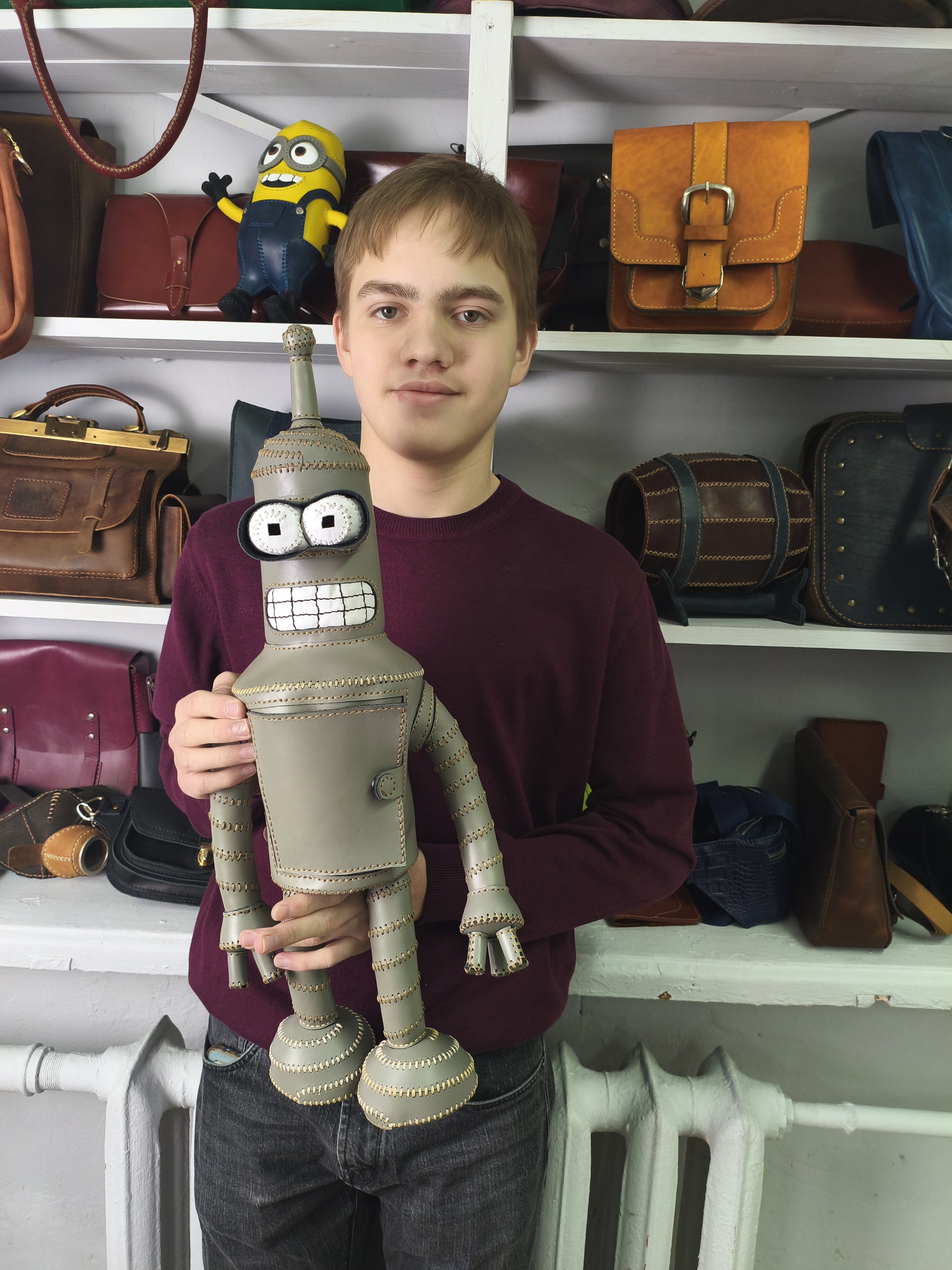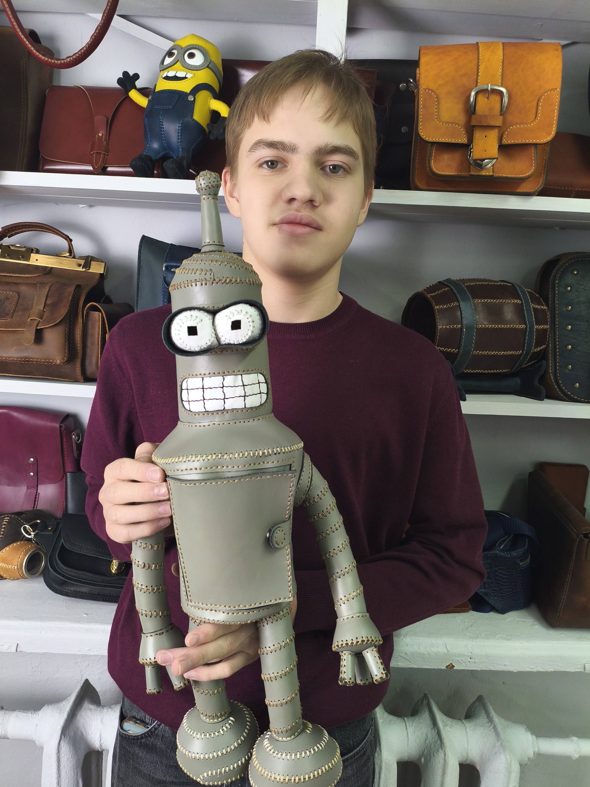 А парни шили разное. Кирилл снова изготовил Бендера.