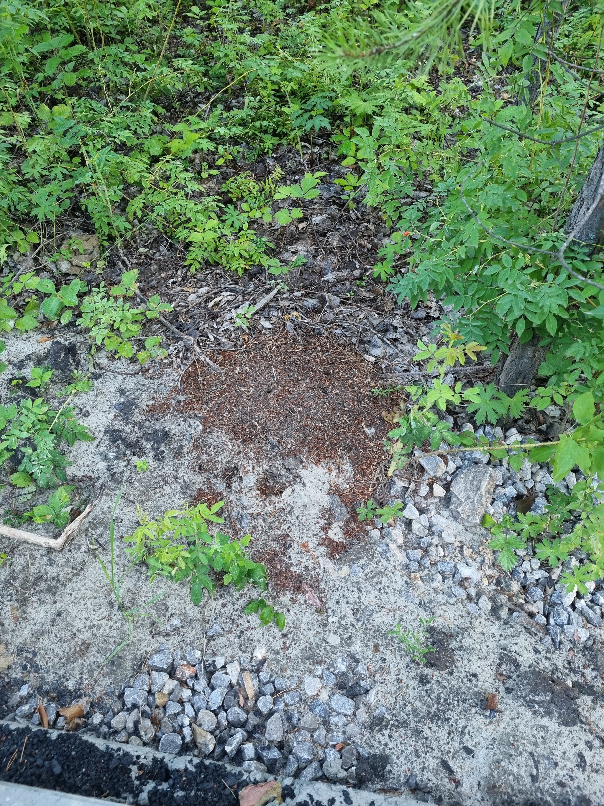 Недавно возникший возле дороги муравейник вида Формика Руфа