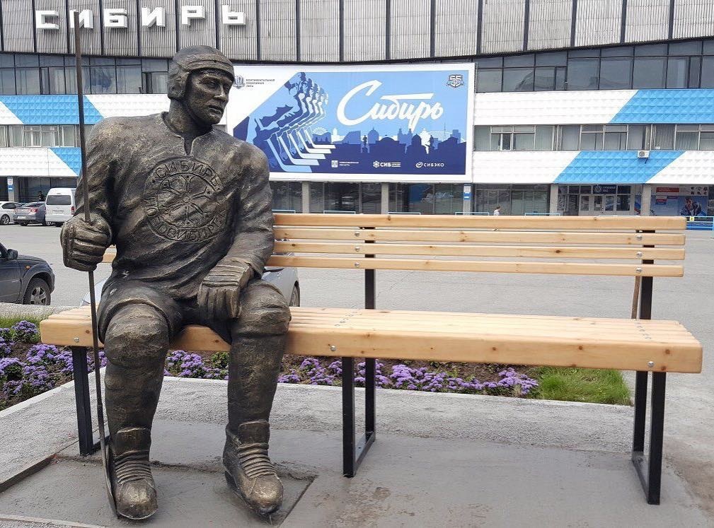 Возле ледового дворца спорта «Сибирь» на улице Богдана Хмельницкого в Калининском районе Новосибирска поставили скульптуру с хоккеистом.