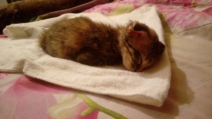 Ну и вот опять... Что ж делать. Забрал! Мелкая совсем, месяца полтора. Спала не просыпаясь всю ночь до утра.