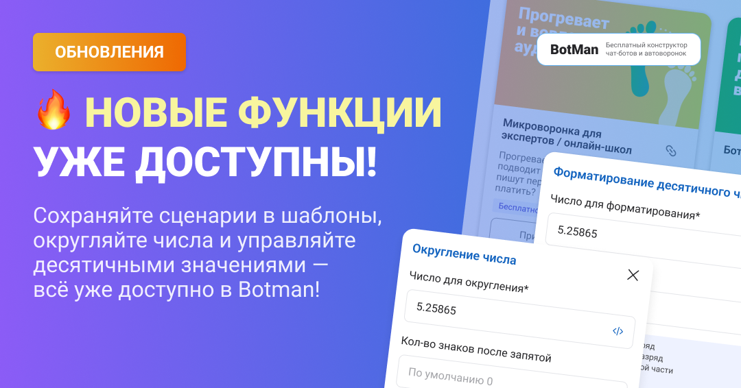Мы выпустили свежий апдейт — и он точно порадует тех, кто работает со сценариями и переменными. Встречайте сразу три новых функции, которые уже доступны в платформе: