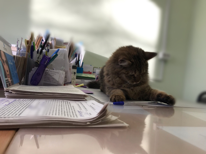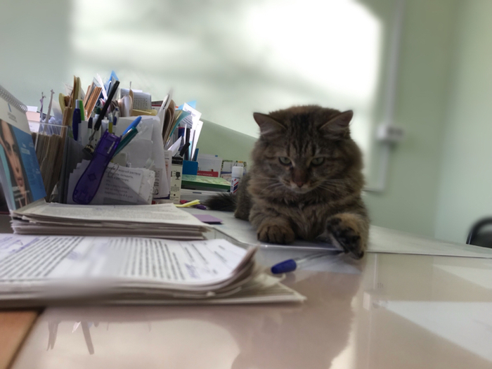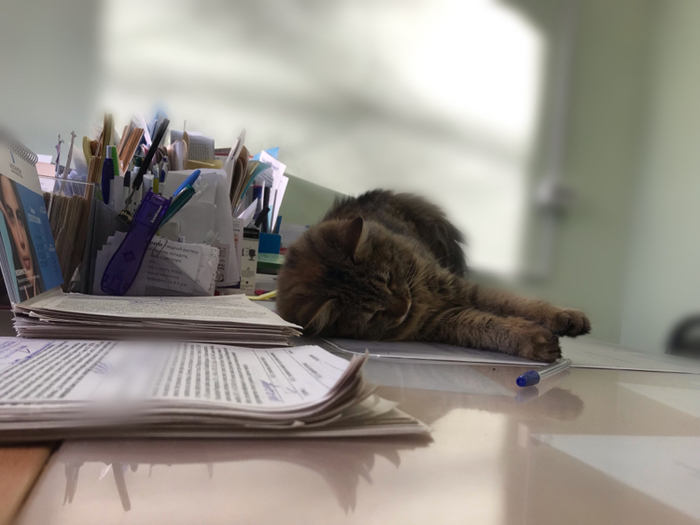 На улицах ударили морозы и сегодня к нам в поликлинику пришёл новый сотрудник. Зашла, по-свойски обошла кабинет. Потом с уверенностью устроилась на место доктора (моё).