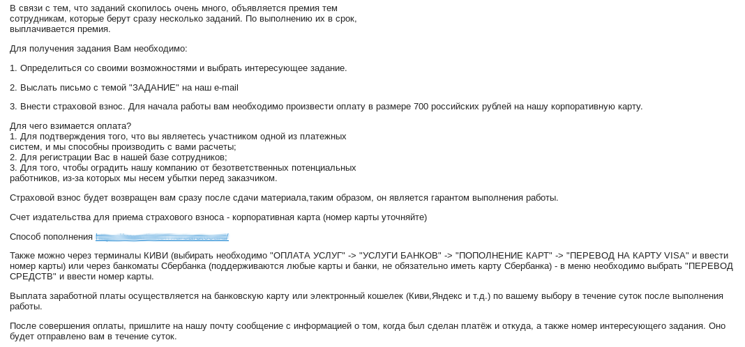 P.S. Да, мне нужны деньги, поэтому и ведусь на любые подработки.