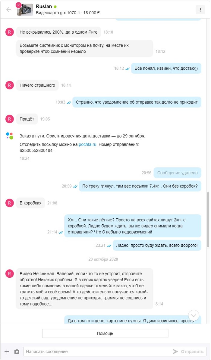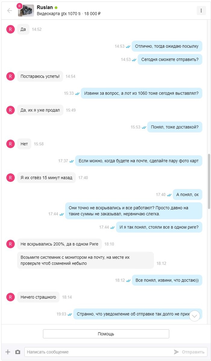 Меня насторожило, что он не снимал видео при отправке, ну да ладно, судя по диалогу все норм.