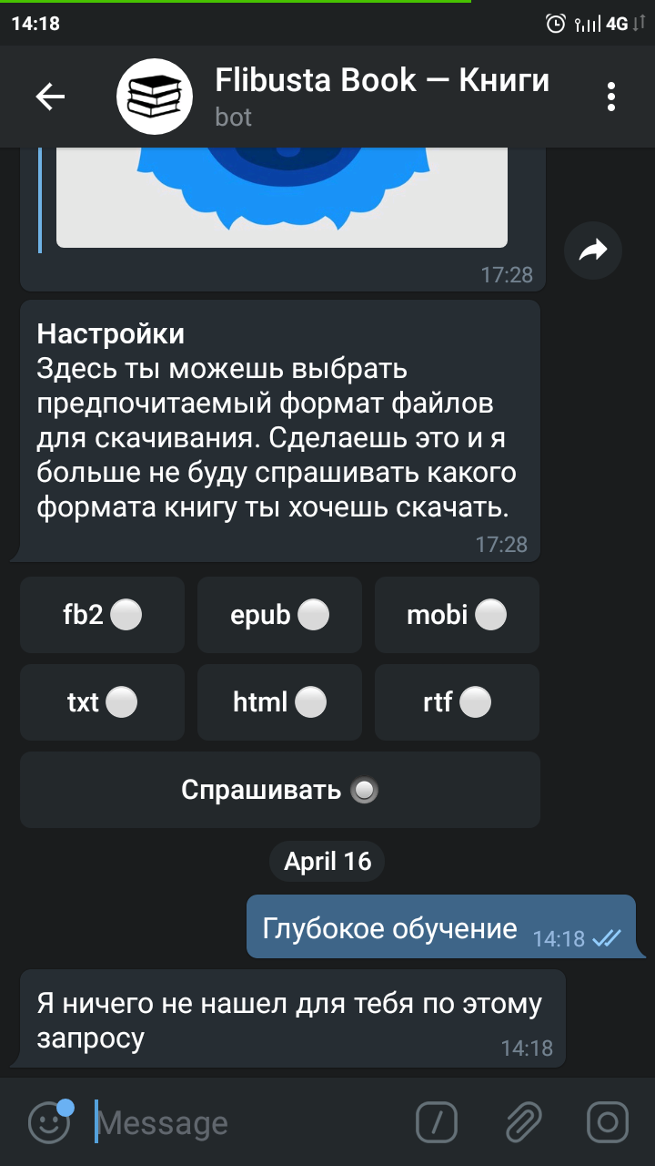 Очень крутой бот, но нужной литературы так и не нашёл (