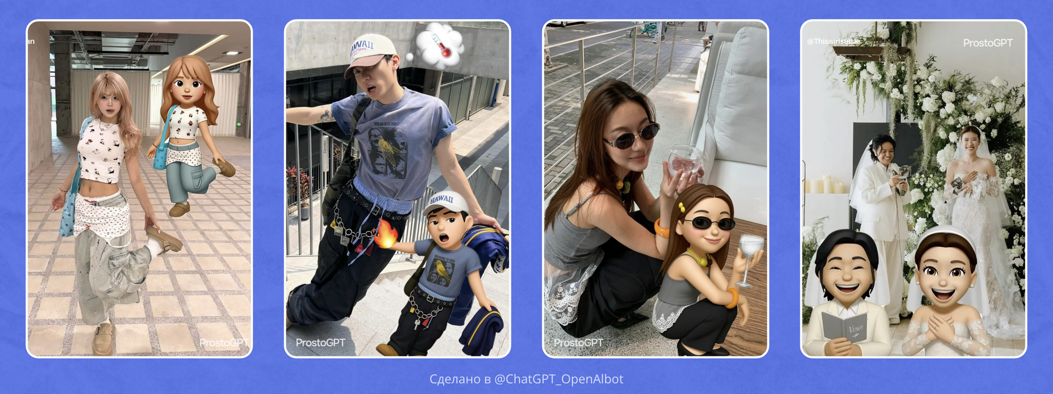 Наши восточные партнеры (китайцы) массово начали делать из себя прикольные Memoji и добавлять их в свои фото. Нейросеть ChatGPT идеально повторяет одежду, мимику и позу человека в кадре.