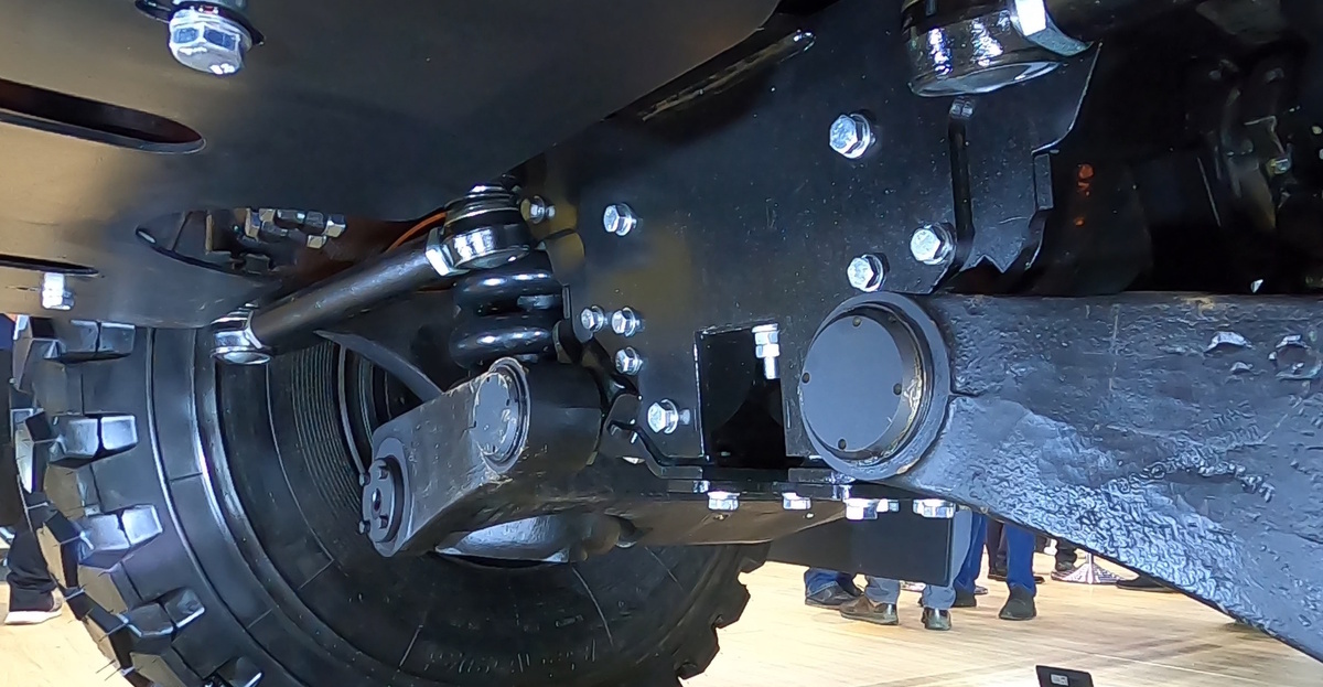 Грузовик может иметь от 3 до 6 ведущих осей. Каждая ось рассчитана на нагрузку в 12 тонн. Причем передняя ось тоже. Оси грузовика являются унифицированными конструкциями: центральные редукторы переднего и заднего моста одни и те же. Для всех осей одинаковы и бортовые редукторы с планетарной передачей. То есть полное единообразие всех элементов трансмиссии.