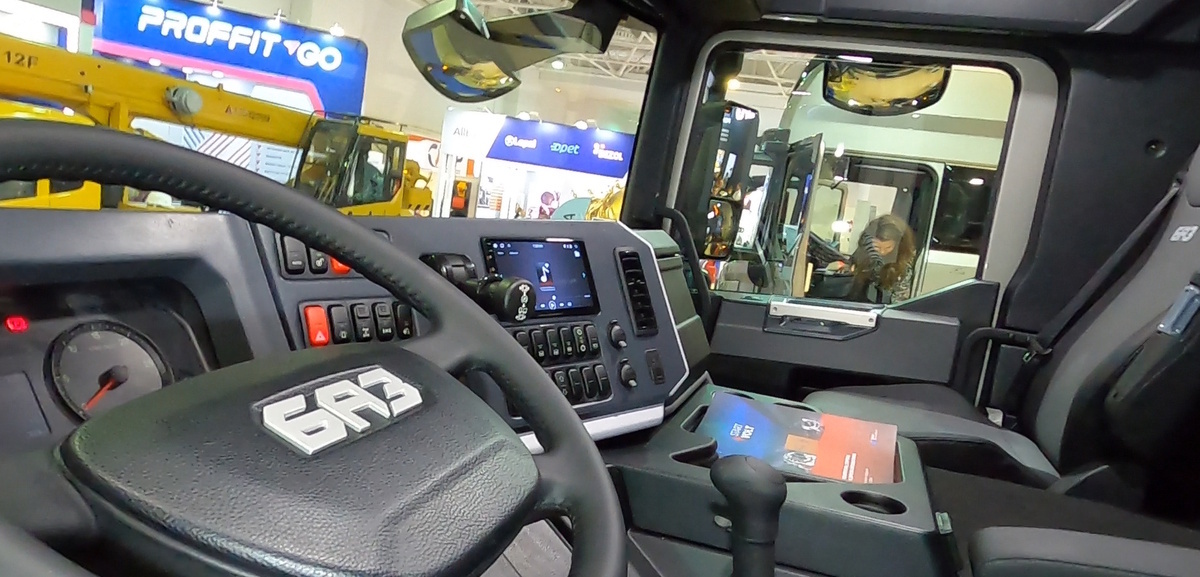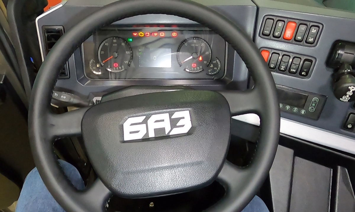 При этом оба варианта, как водительского, так и пассажирского сидений, регулируемые, с пневматическим подрессориванием и электроподогревом. Сама кабина БАЗ снабжена двумя цилиндрами подъема, что исключает ее перекос. Вся оптика на серийных грузовиках будет только светодиодной.