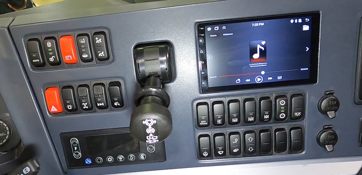 Центральная часть панели приборов развернута в сторону водителя. На небольшой жидкокристаллический дисплей, выводятся основные параметры (пробег, расход топлива и прочие данные), а также ошибки, диагностируемые электронными блоками. Предусмотрен климат-контроль и USB-разъемы для питания дополнительных приборов, которые нужны водителю в работе и на отдыхе.