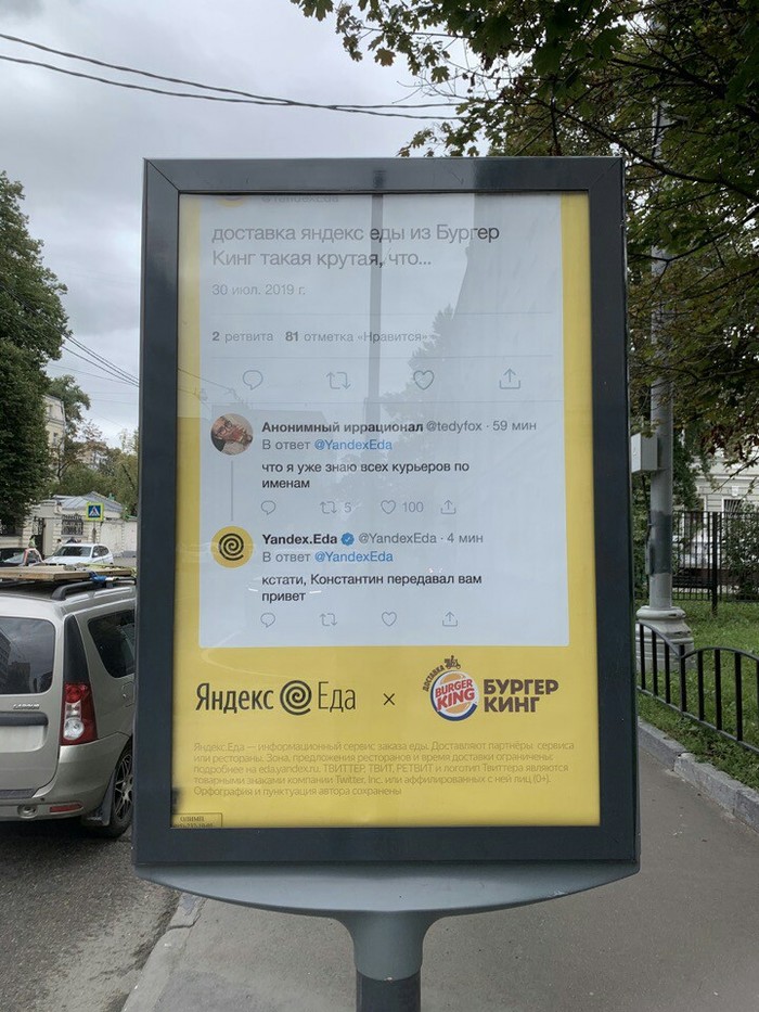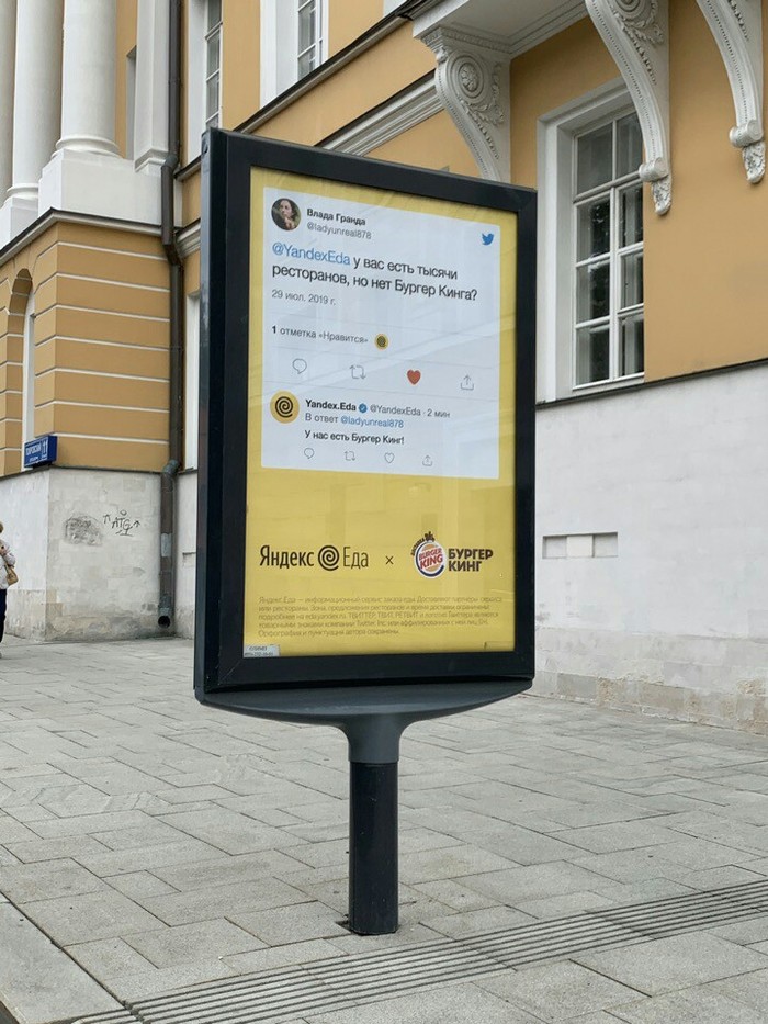 10 3uDaH Новый уровень уличной рекламы от Яндекс Еды. 6 лет назад X (Twitter) Наружная реклама Маркетологи Яндекс Еда Бургер Кинг Длиннопост