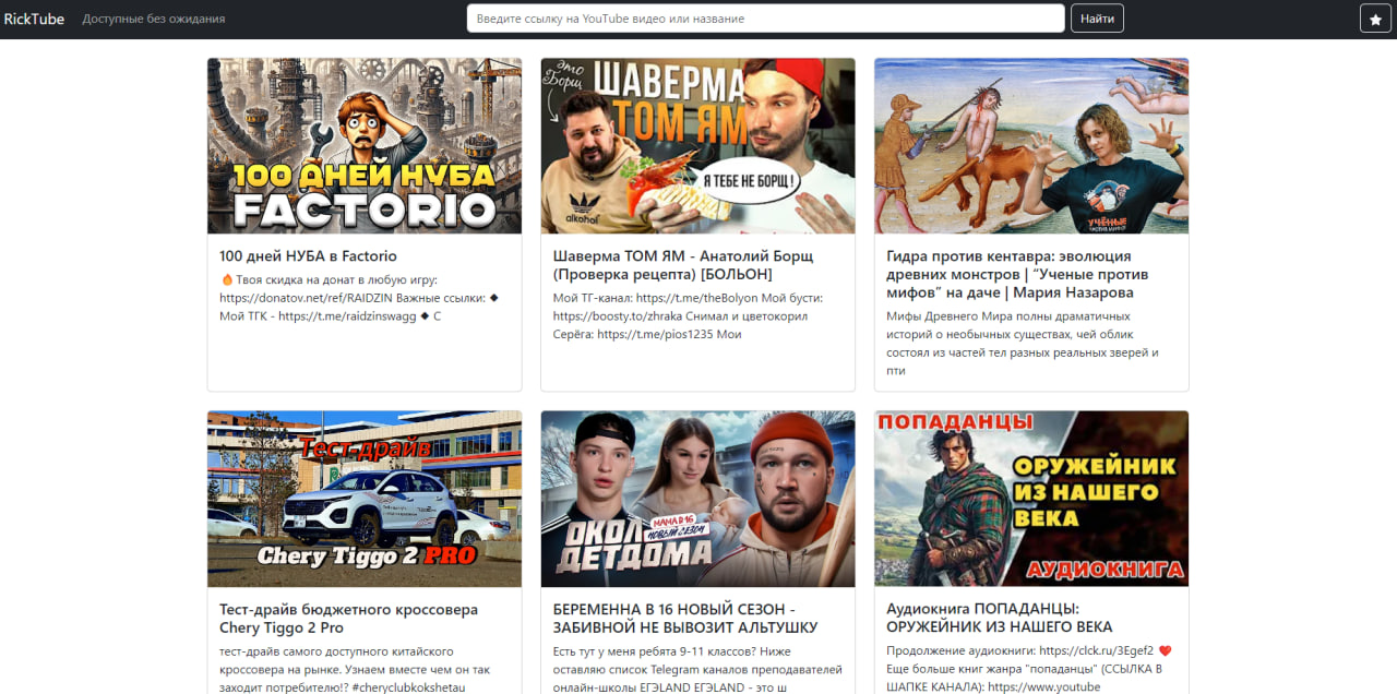 Для обновления списка - обновить страницу или нажать на "Ricktube" или "Доступные без ожидания"