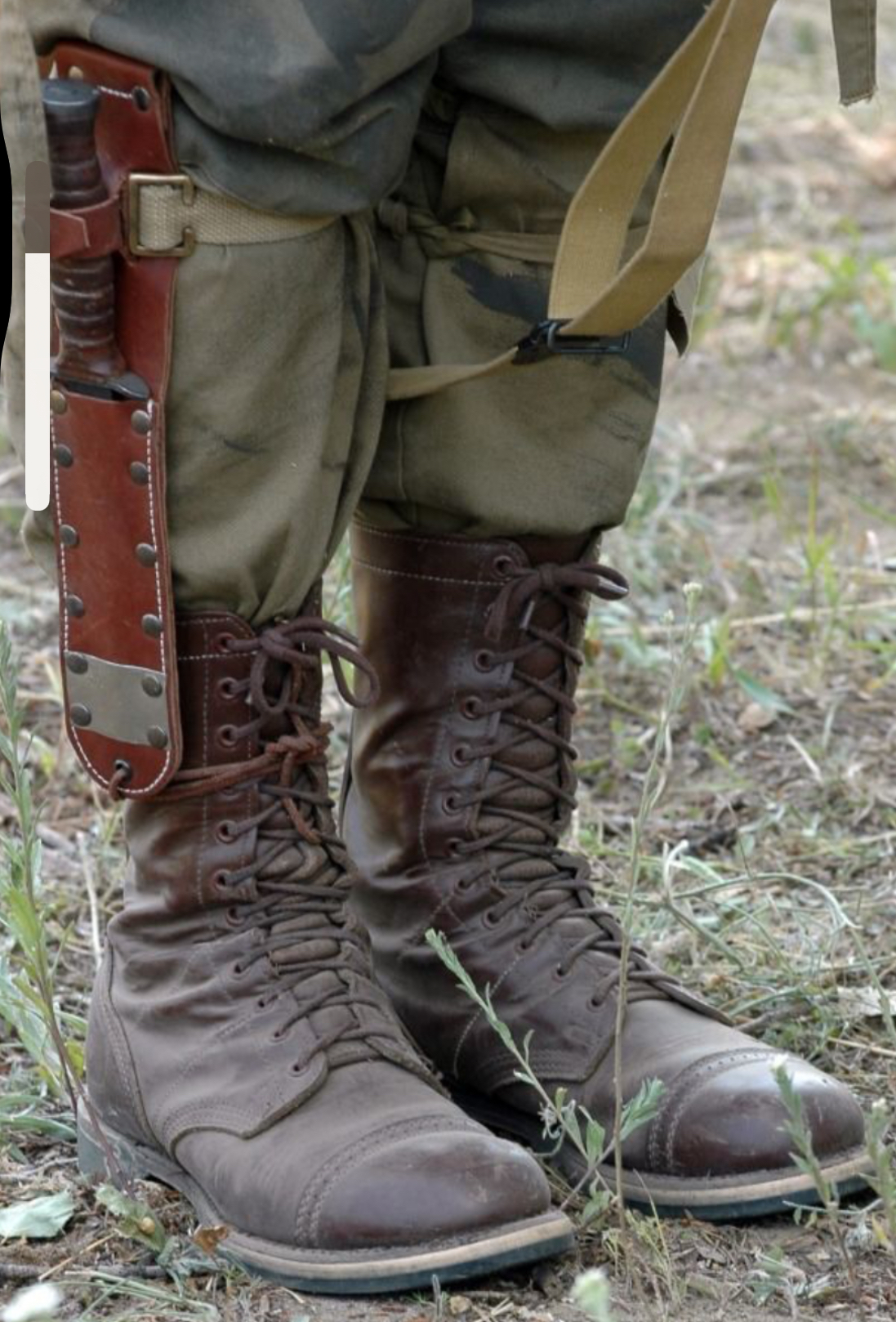 …так он однажды, при переходе, в болотистой местности увяз. Стало немного затягивать. Уцепили его, тащим вдвоём — не идёт. А он старается выбраться, но сам не понимает в чём дело, что держит. Оказалось этой своей игрушкой зацепился за что-то в топи. А как понял это, попытался отцепиться — хрен! Весь в снаряге, а еще и в болоте, не может дотянуться. С горем пополам отцепиться удалось. Вытащили модника. Будь один — кончил бы плохо. Ножны эти он снял в тот же день. Это нам всем стало уроком — носи всё либо в рюкзаке, либо в пределах вытянутой руки.»